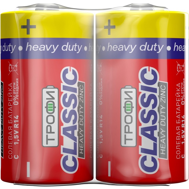 Классические Heavy Duty на цинковой технологии с напряжением 1.5 В рассчитаны на низкое и непродолжительное энергопотребление: оптимальны для фонариков, радиоприёмников, детских игрушек и часов, где важна доступность и стабильная подача тока без переплаты за щёлочные аналоги. Отличие от моделей на щёлочном электролите (LR14) — более выгодная цена при использовании в маломощных устройствах, а от перезаряжаемых — отсутствие необходимости в зарядке и совместимость “поставил и забыл”.