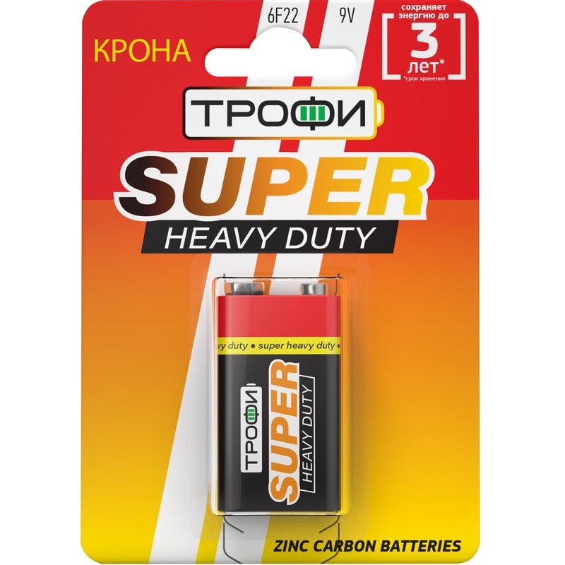 Батарейка Трофи 6F22-1BL Super Heavy Duty Zinc