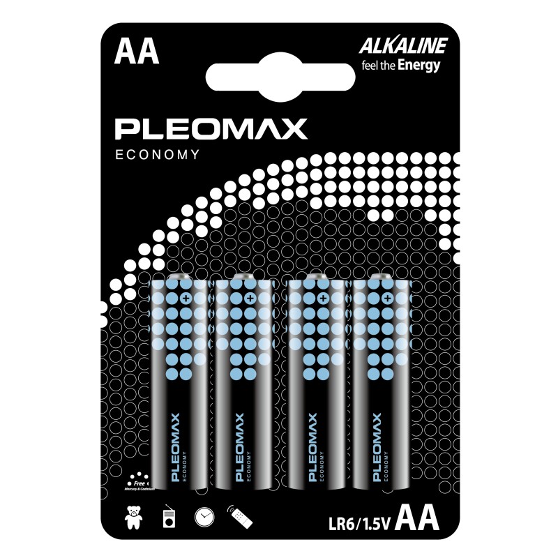 Чем отличаются от других В отличие от цинк‑угольных элементов, щелочная химия даёт более длительную работу в устройствах с умеренным потреблением. Серия Economy — базовое и выгодное решение Pleomax для повседневных задач; формат AA/LR6 — самый распространённый, что упрощает замену и хранение.