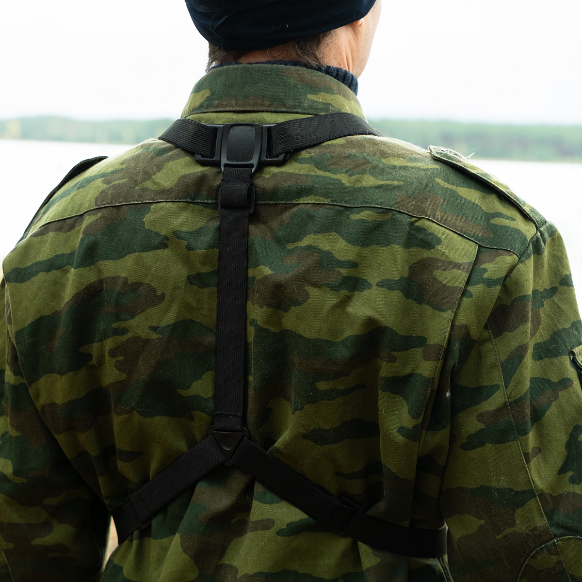 в процессе использования Эхолота "Rivertech 8": фиксировать сумку в удобном положении для пользователя, закрепив на торсе, тем самым освобождая руки;