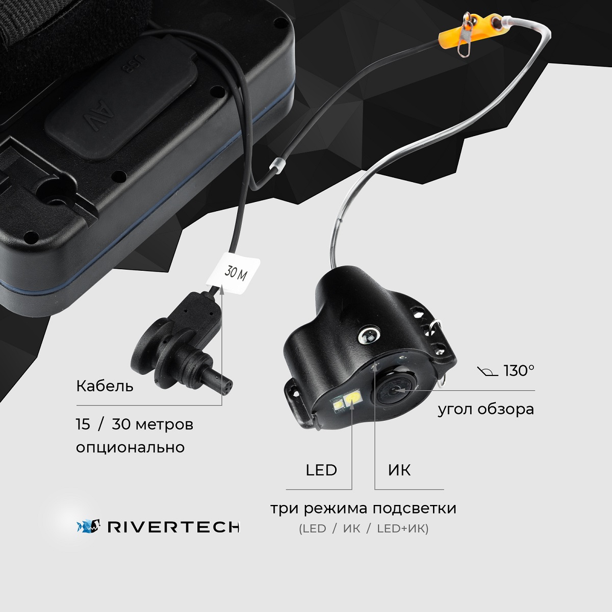 - Переносной портативный 5-дюймовый цветной TFT-монитор подводной видеокамеры «Rivertech C5» имеет разрешение 960х480 пикселей. Такое высокое разрешение позволяет видеть четкую и яркую картинку даже на глубине 10-15 м при среднем уровне прозрачности воды. Наличие солнцезащитного козырька обеспечивает защиту от бликов на экране;