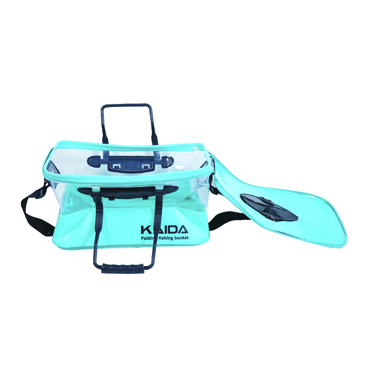 Форма канa 45х26х25см компактна, что позволяет удобно перевозить и хранить рыбные аксессуары, живца, улов и принадлежности для ухода за снастями. Складная конструкция облегчает транспортировку и позволяет экономить место в рюкзаке или лодке. Вес канa минимален, а функциональность — максимальна: оснащен удобной крышкой с замком, плотно закрывающейся для предотвращения попадания воды и брызг внутрь.