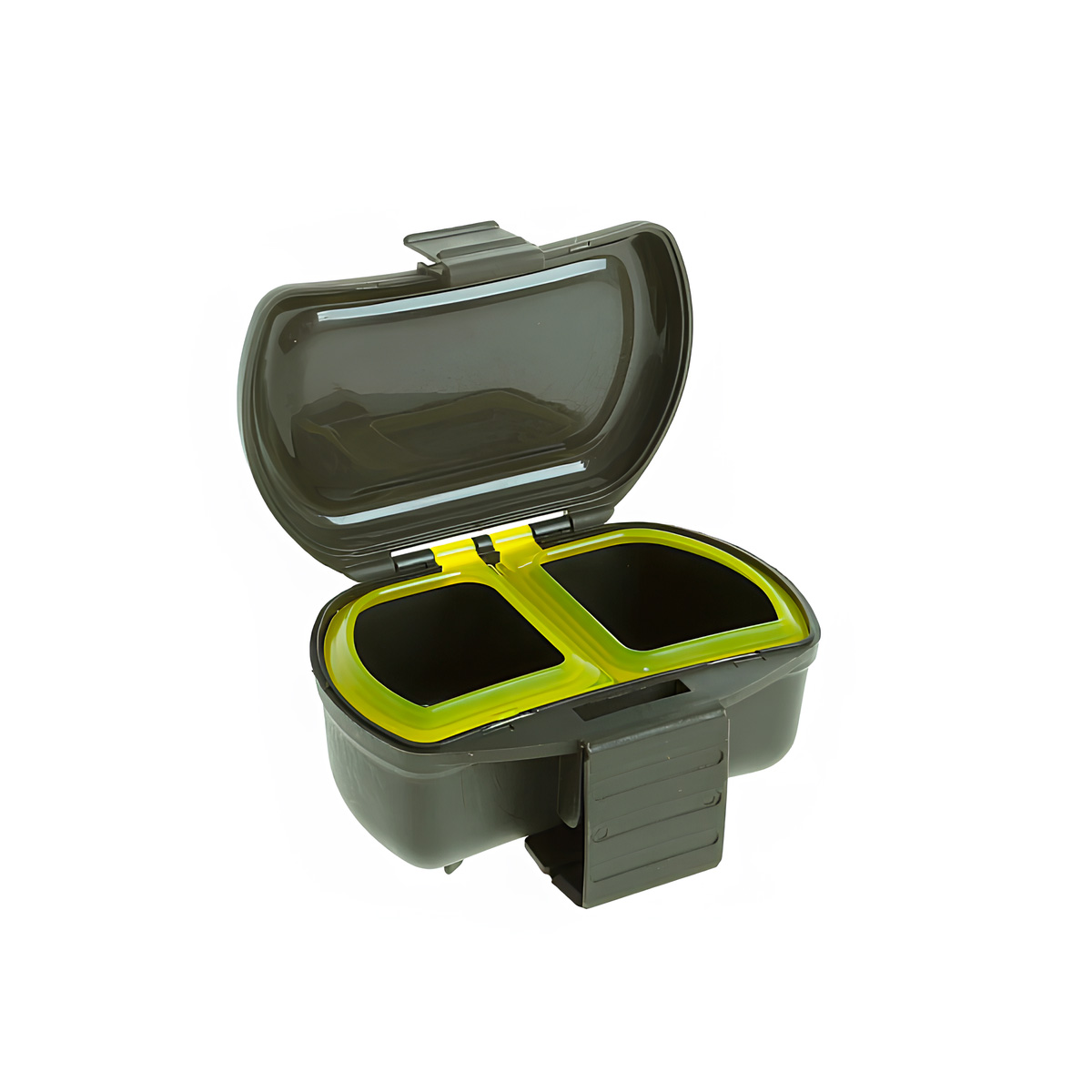 Червячница данной модели дополняется креплением, предназначенным для того, чтобы для удобства использования ее можно было быстро закрепить на ремне. Длина червячницы составляет всего 13 см, всего в контейнере 2 отделения, габаритами 7*6*4,5 см, что позволяет хранить 2 разных вида приманки в необходимом объеме одновременно