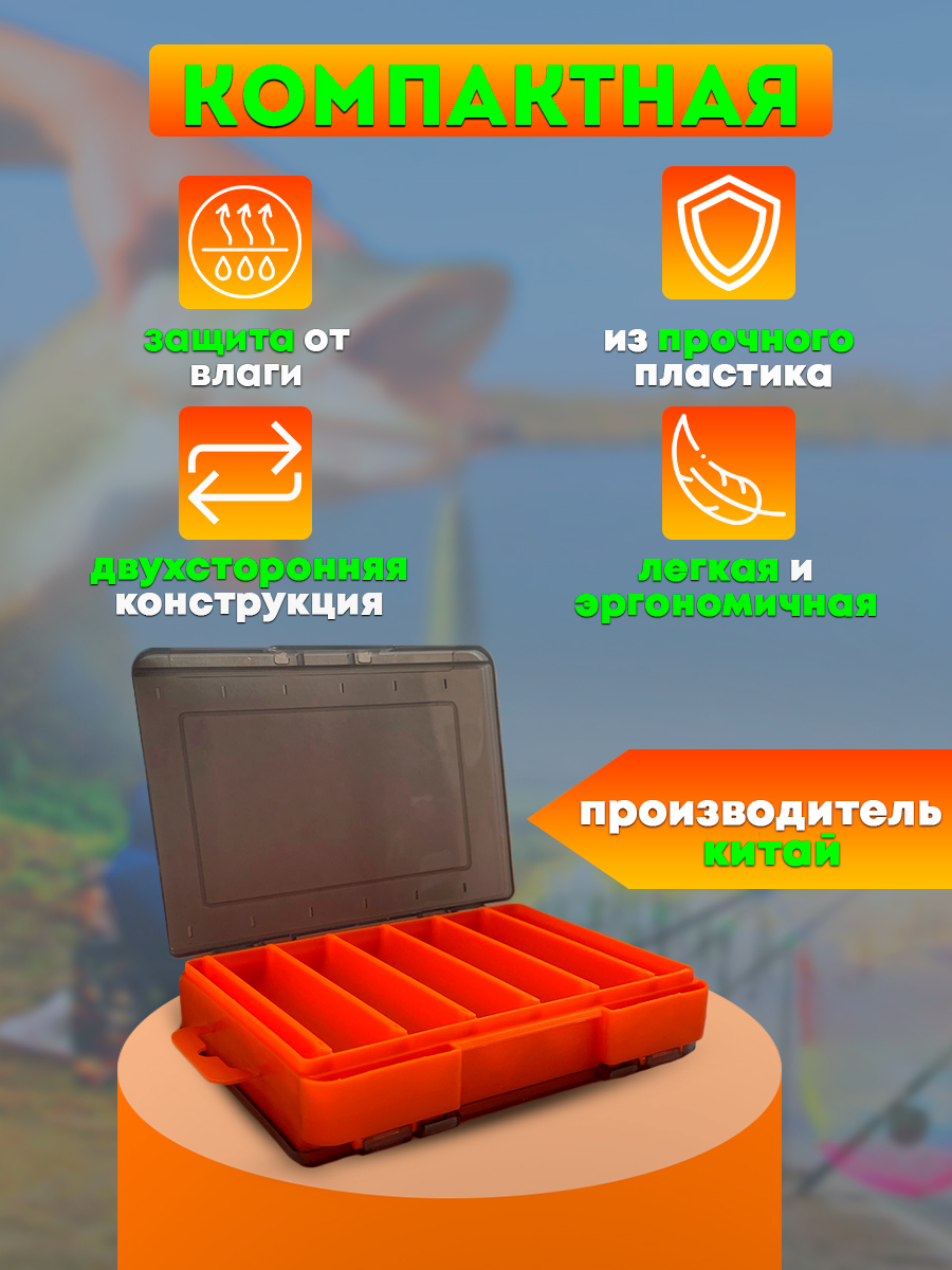 Коробка 130х90х30мм (12 ячеек) для воблеров, двухсторонняя, красная