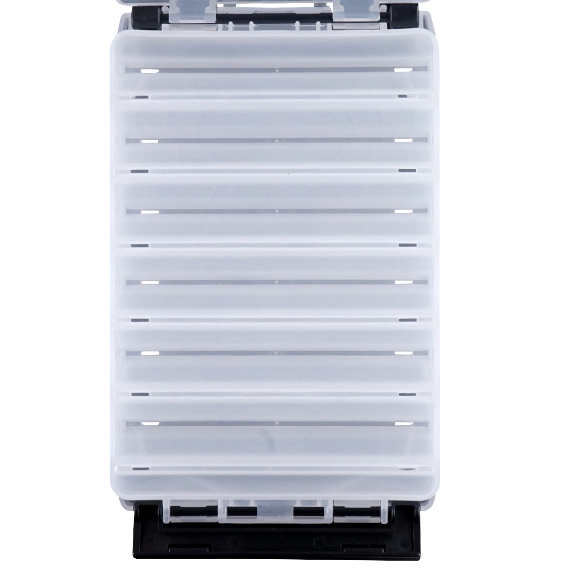 Ячейки V-образной формы не дают воблерам, раттлинам переваливаться с боку на бок во время транспортировки, что сохраняет их от повреждения собственными крючками. Специальные вентиляционные отверстия не позволят влаге скапливаться внутри коробки, благодаря чему приманки не будут окисляться.