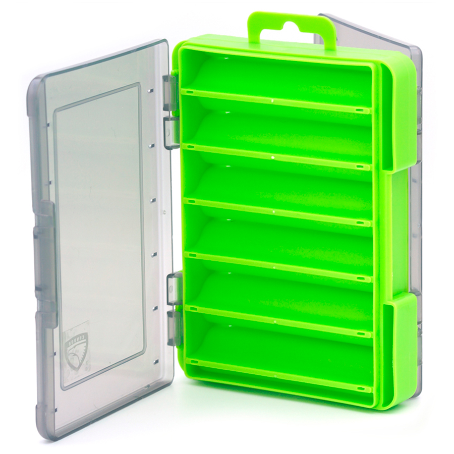 Коробка 130х90х30мм (12 ячеек) для воблеров, двухсторонняя, зеленая
