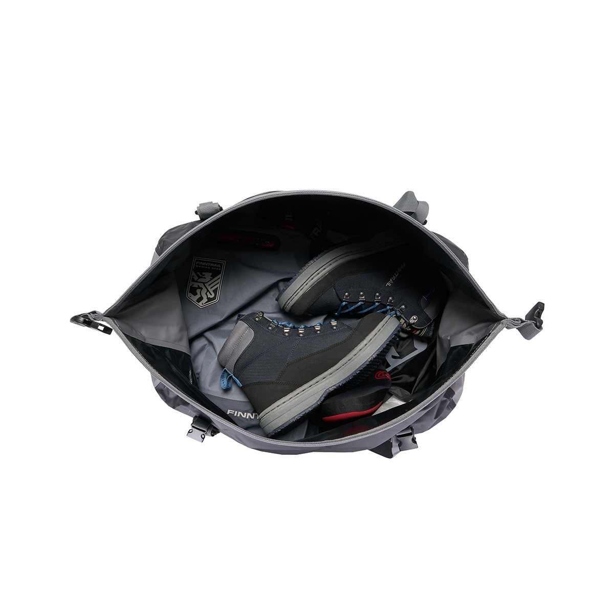 Прочный, износостойкий и водонепроницаемый материал надёжно защищает содержимое сумки от влаги и грязи. Двухсторонняя резиновая обработка и сварные швы обеспечивают 100% герметичность и водонепроницаемость. Функциональный дизайн модели объединяет в себе продуманные детали, глубокий чёрный цвет и фирменный логотип FINNTRAIL. Крепкие лямки способны выдерживать большой вес, плечевой ремень создаёт дополнительный комфорт при переноске сумки, а качественная фурнитура обеспечивает долговечность и надёжность. Специальный клапан для выпуска воздуха позволяет сжимать сумку, уменьшая её объём.
