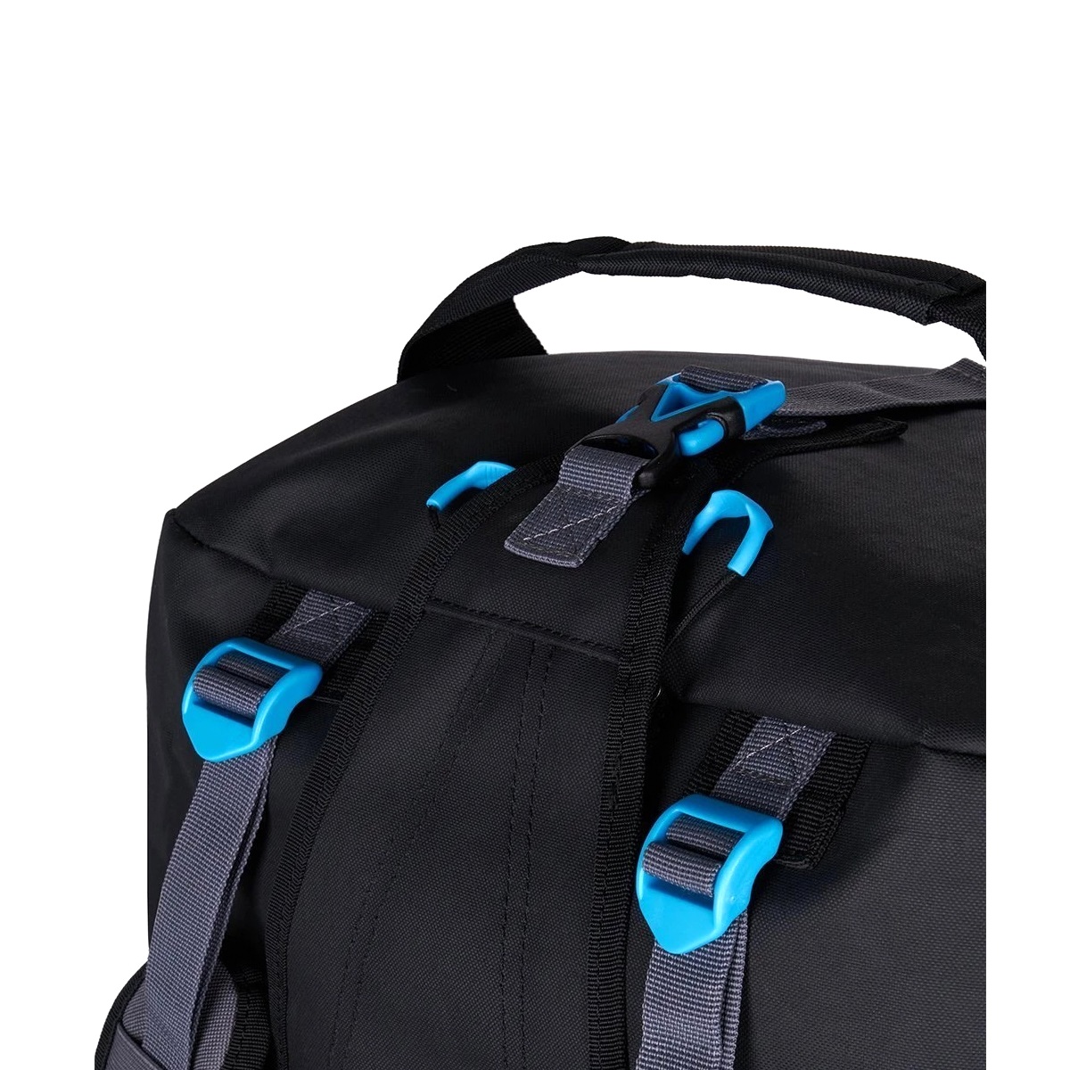 предотвращает проникновение внутрь влаги и грязи. Благодаря степени защиты IP64, материал сумки выдерживает снег с дождём. Двусторонняя тракторная молния, оснащённая влагозащитным клапаном, надёжно защищает от воды и позволяет быстро и легко получить доступ к содержимому сумки. Функциональный дизайн модели объединяет в себе продуманные детали, глубокий чёрный цвет, фирменный логотип FINNTRAIL. Анатомические лямки выдерживают большой вес и дают возможность переносить сумку на спине на небольшие расстояния. Конструкция лямок разработана таким образом, чтобы соответствовать естественной форме плеч и спины. Две крепкие ручки позволяют с комфортом носить сумку в руках.