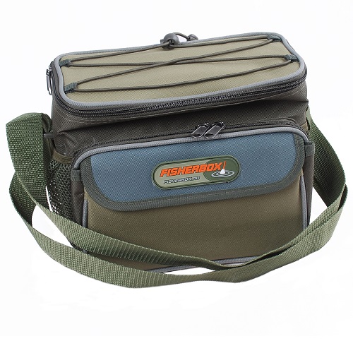 Спереди сумки размещен карман на молнии с коробкой FisherBox 216sh и внешним карманом с клапаном на липучке. Просторный, вентилируемый карман с клапаном на липучке расположен сзади сумки. Два небольших сетчатых кармана открытого типа по бокам сумки. Непромокаемое дно.