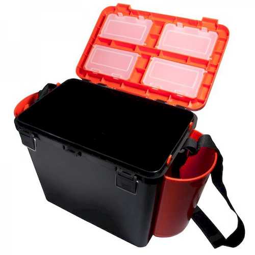 Функциональное основное отделение служит своеобразным каркасом, предотвращающим прогибы ящика и надежно удерживающим вес рыбака. Объем основного отделения (19 литров) позво