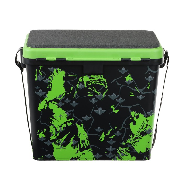 Мягкое незамерзающее сиденье на крышке ящика, аккумулирующее тепло, позволит рыболову комфортно рыбачить с ящика долгое время.