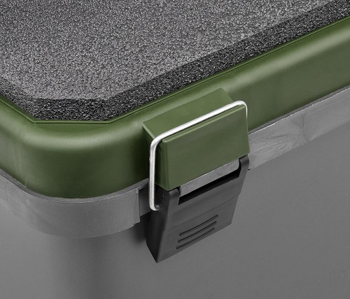 Мягкое незамерзающее сиденье на крышке ящика, аккумулирующее тепло, позволит рыболову комфортно рыбачить с ящика долгое время.