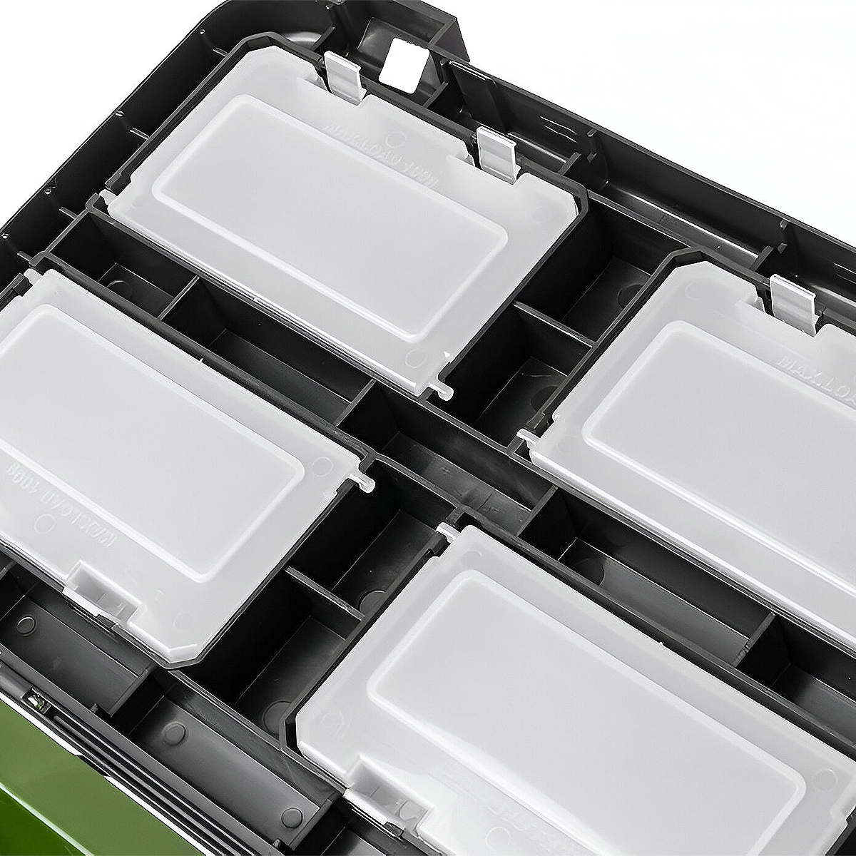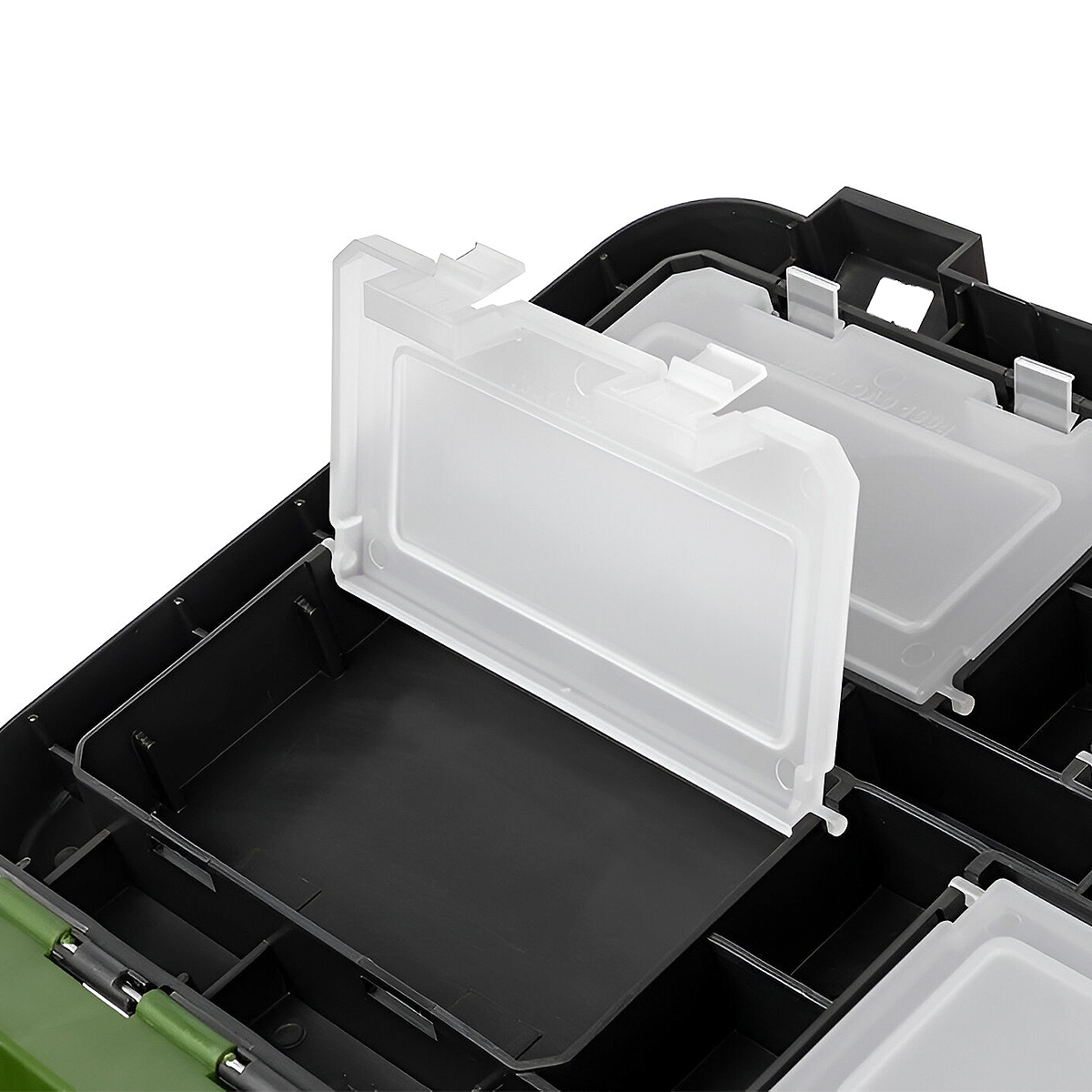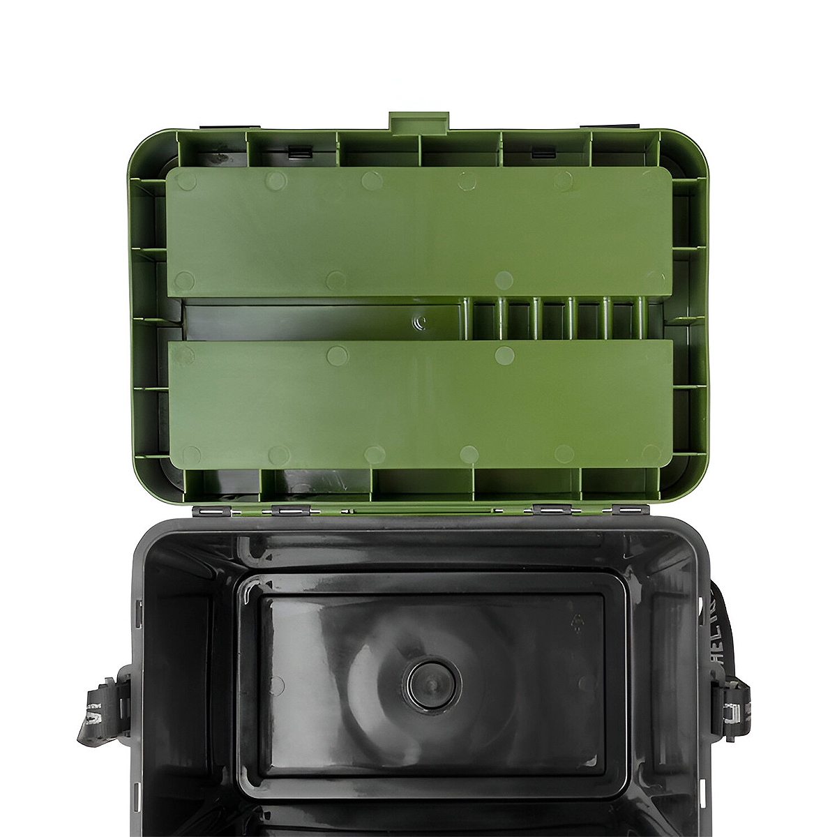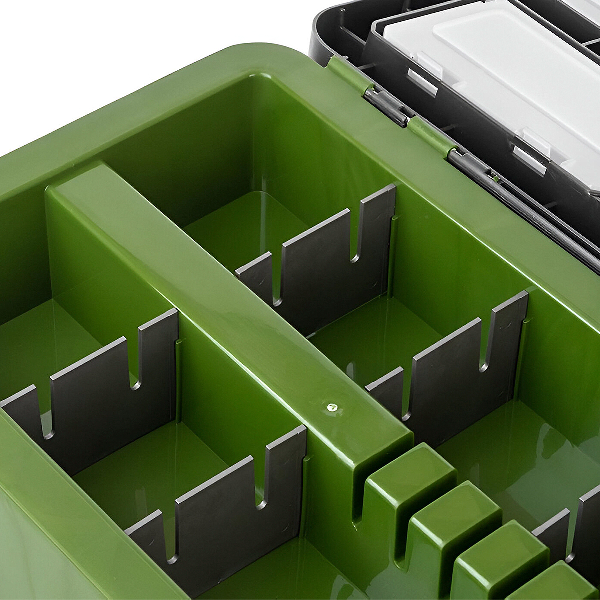 Благодаря объему 19 литров, ящик вместит очень много полезных снастей для рыбалки. Дополнительная проставка с 2 отсеками и съемными перегородками позволяет разместить небольшие удочки и другие снасти.