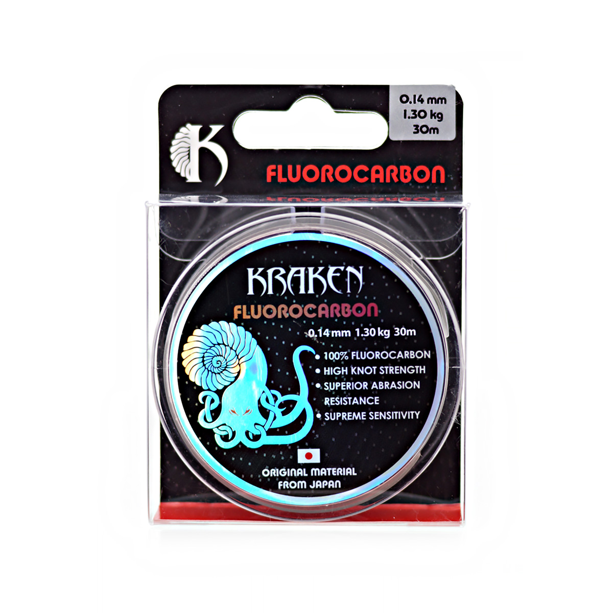 Леска флюорокарбоновая Kraken Fluorocarbon 30м 0,14мм 1,3кг прозрачная
