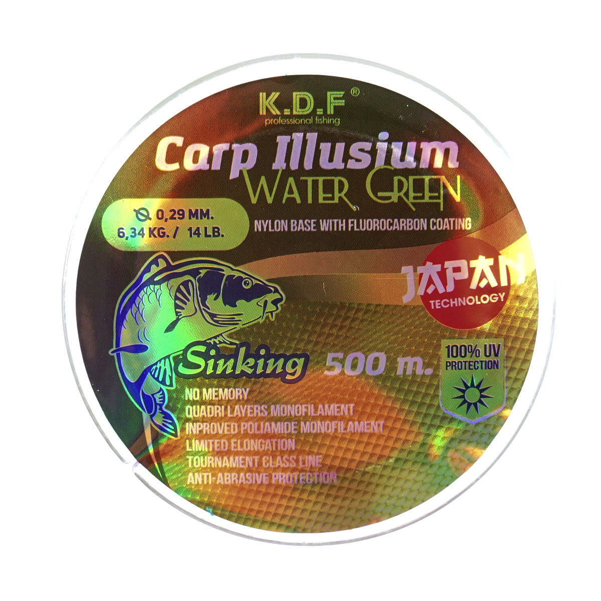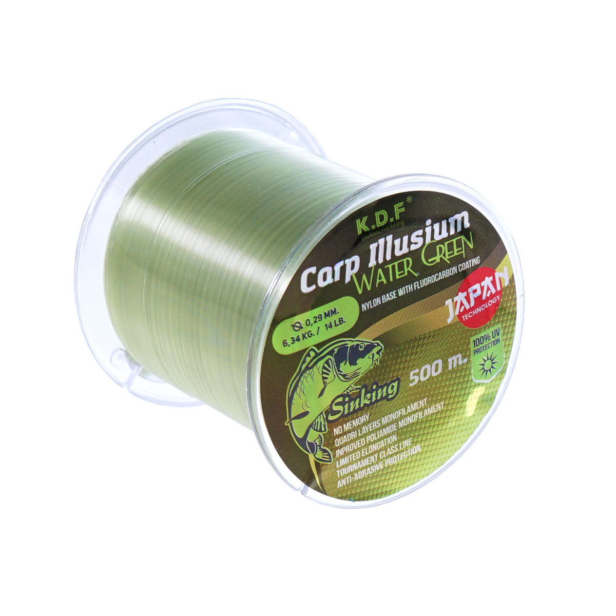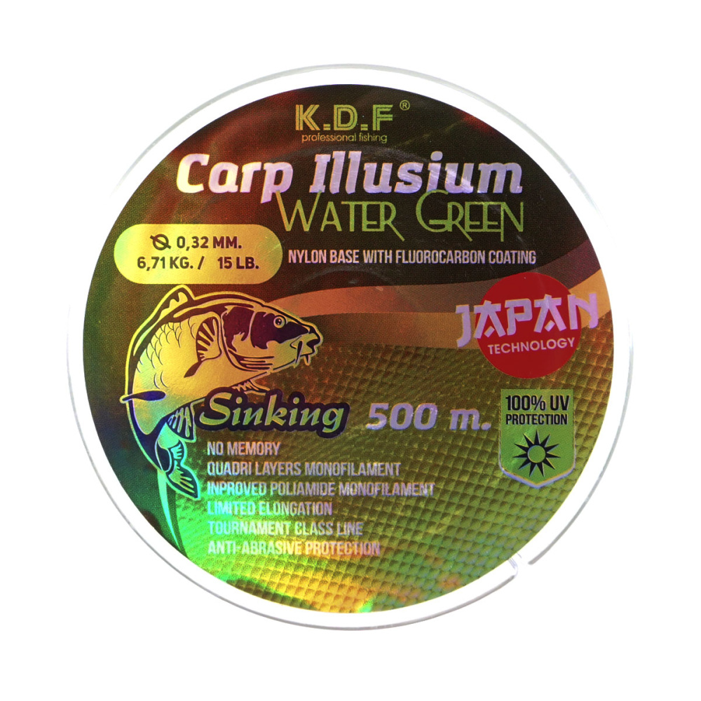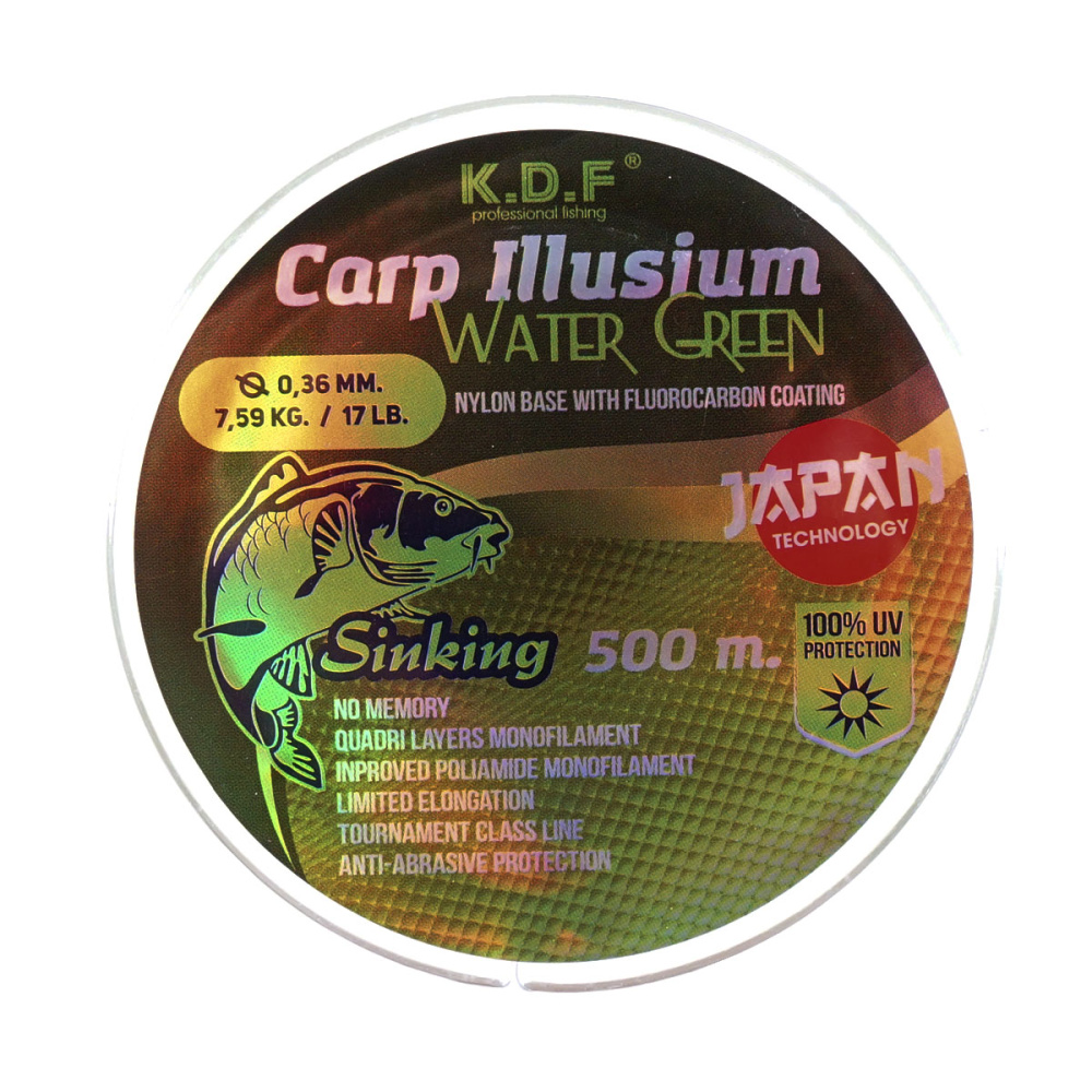 Леска с флюорокарбоновым покрытием KDF Carp Illusium Water Green 500м 0,29мм 6,34кг светло-зеленая