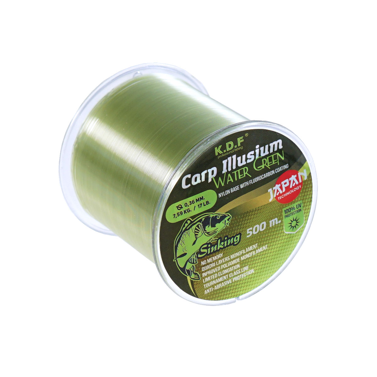 Леска с флюорокарбоновым покрытием KDF Carp Illusium Water Green 500м 0,36мм 7,59кг светло-зеленая