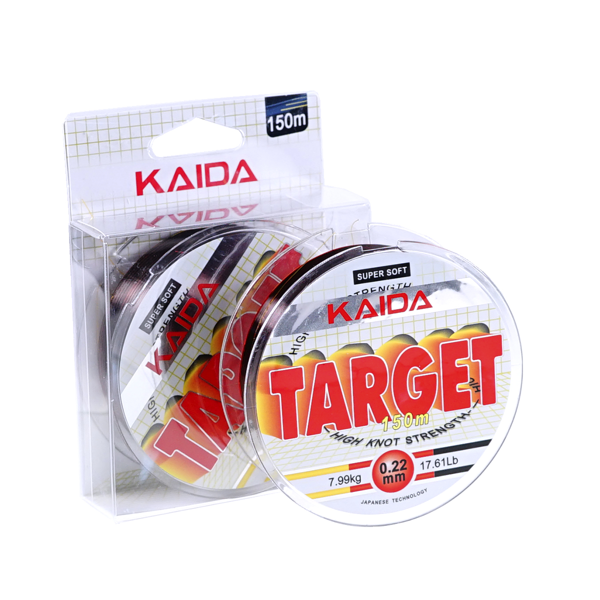 Лескa Kaida Target 150м 0,22мм 7,99кг желтая, красная, черная
