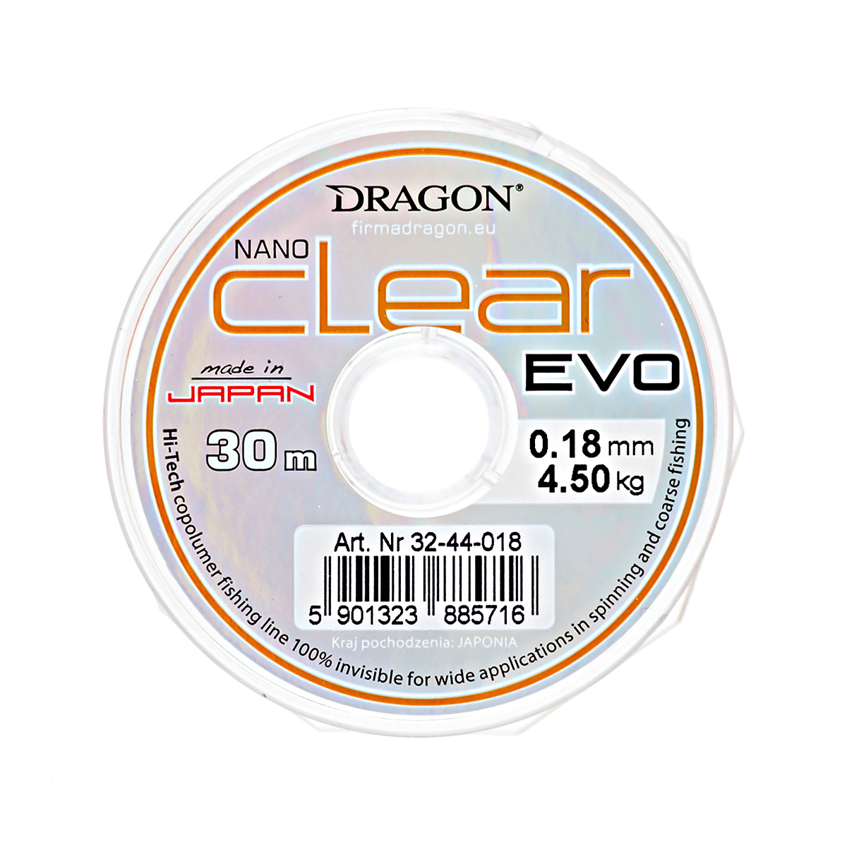 Леска Dragon NanoClear Evo 30м 0,18мм 4,5кг прозрачная
