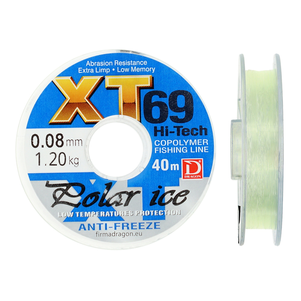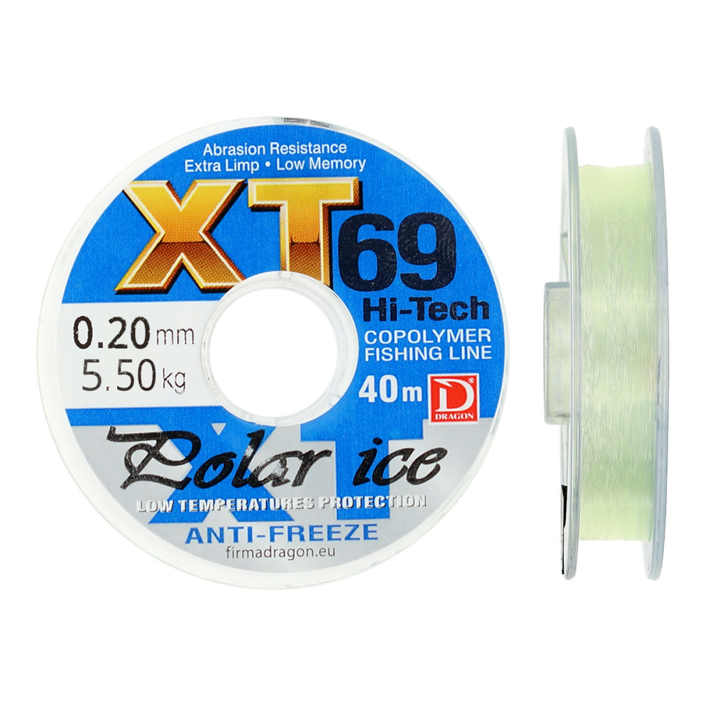 Леска зимняя Dragon XT69 Hi-Tech Polar Ice 40м 0,18мм 4,45кг прозрачная
