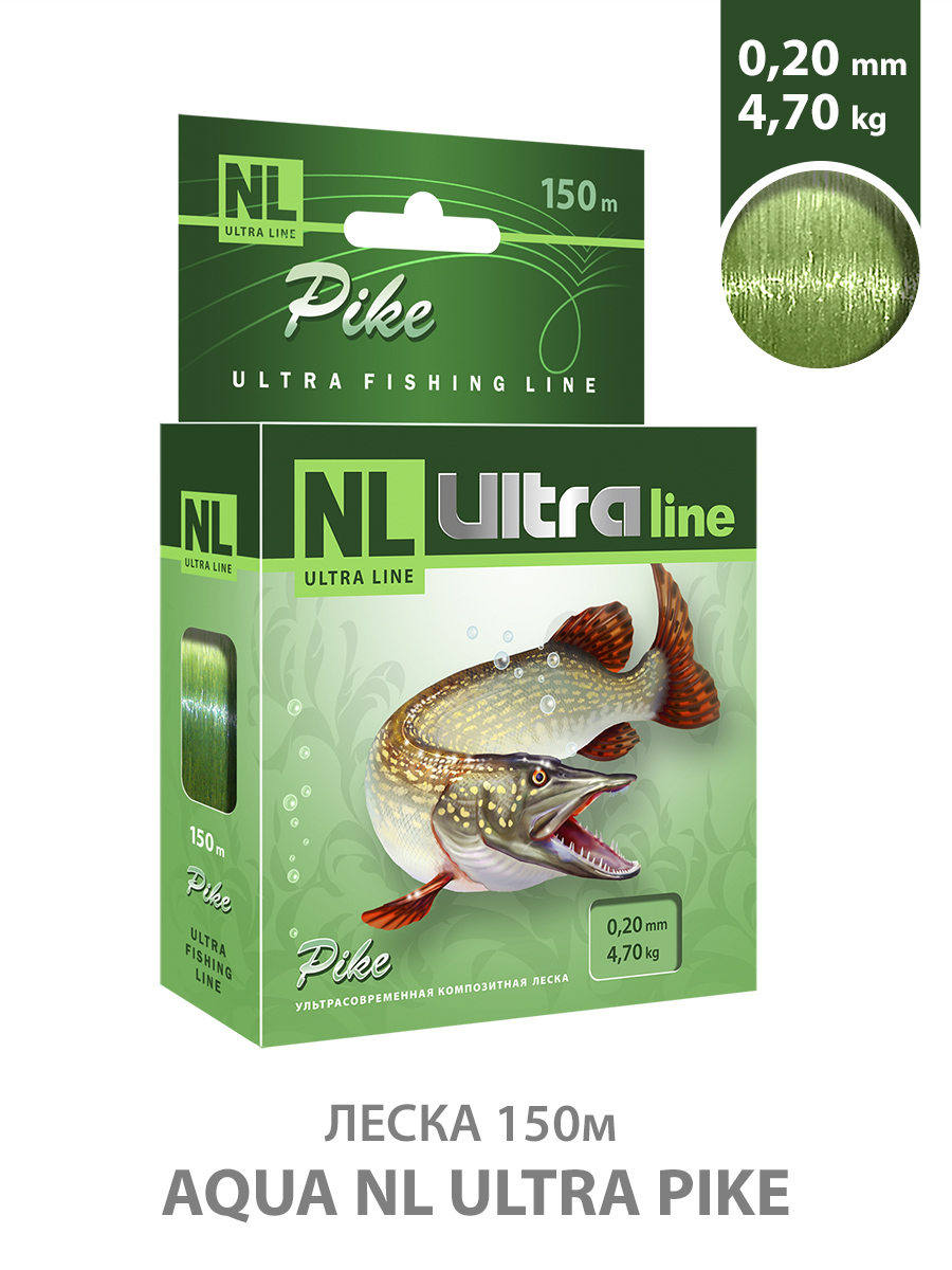 Леска Aqua NL Ultra Pike Щука 150м 0,20мм 4,7кг светло-зеленая