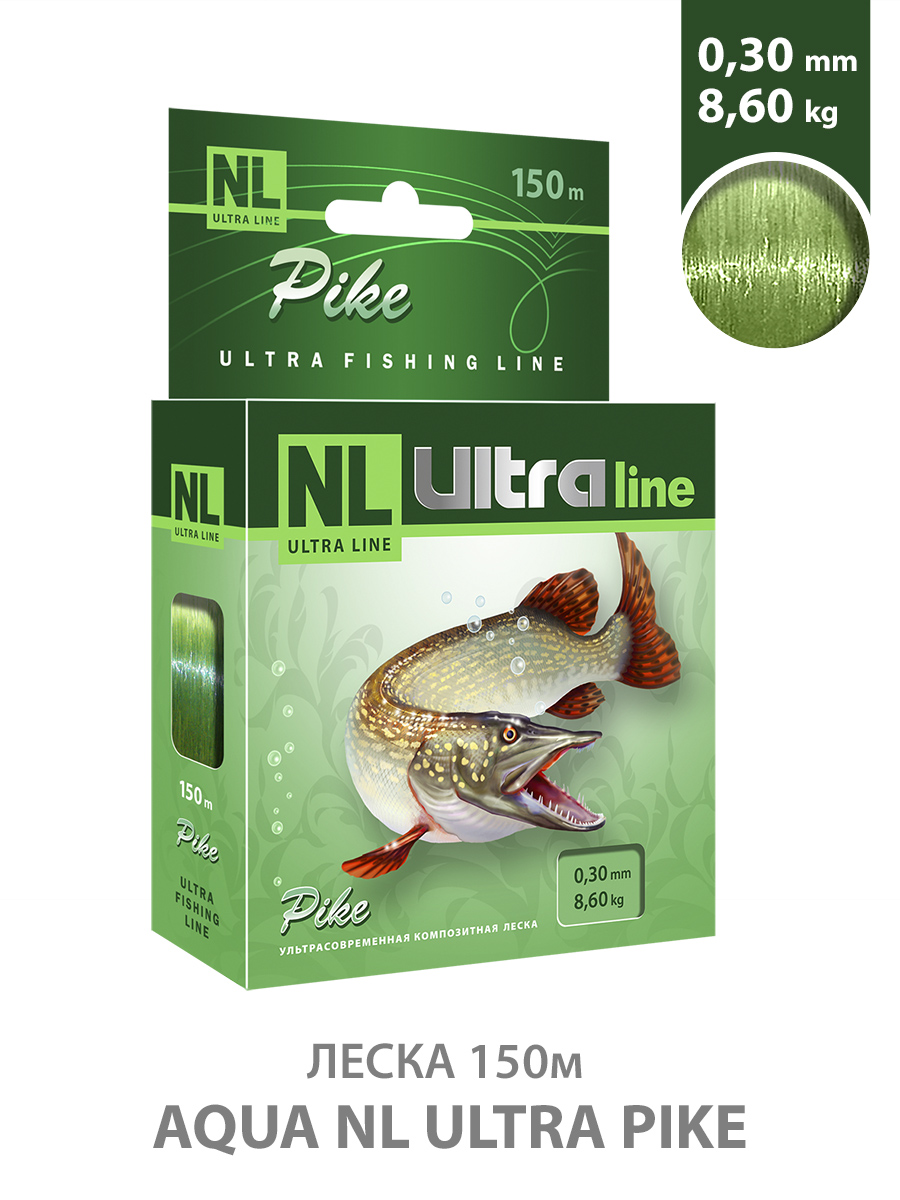 Леска Aqua NL Ultra Pike Щука 150м 0,30мм 8,6кг светло-зеленая