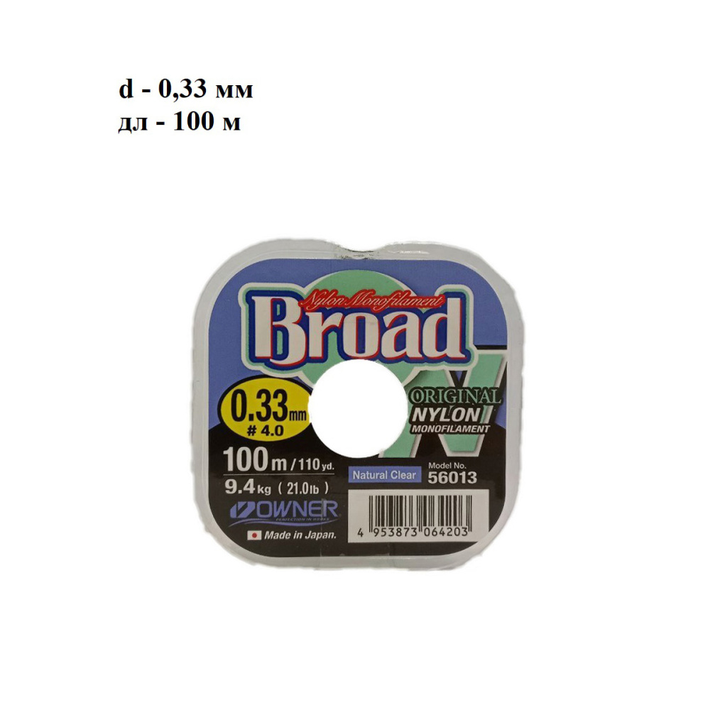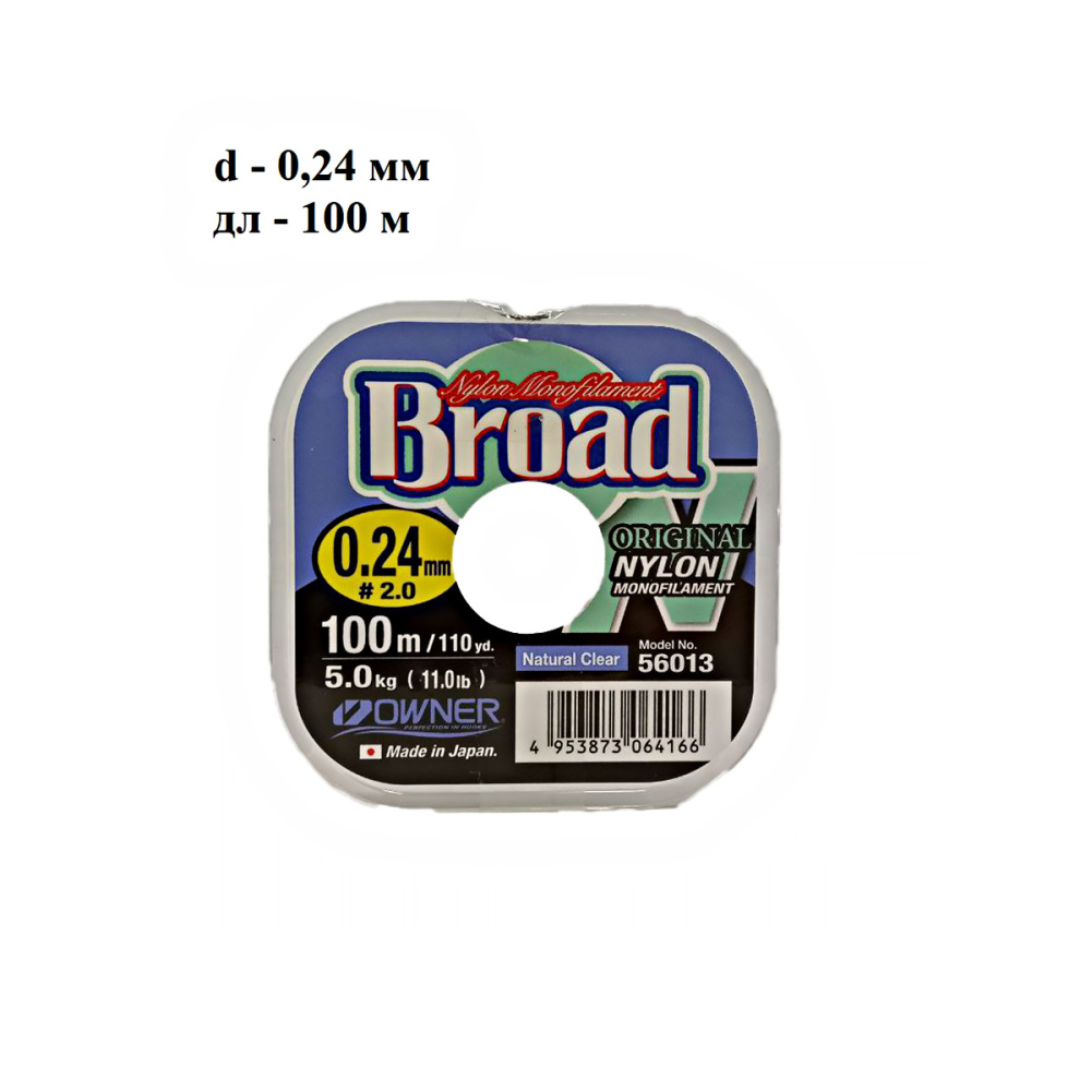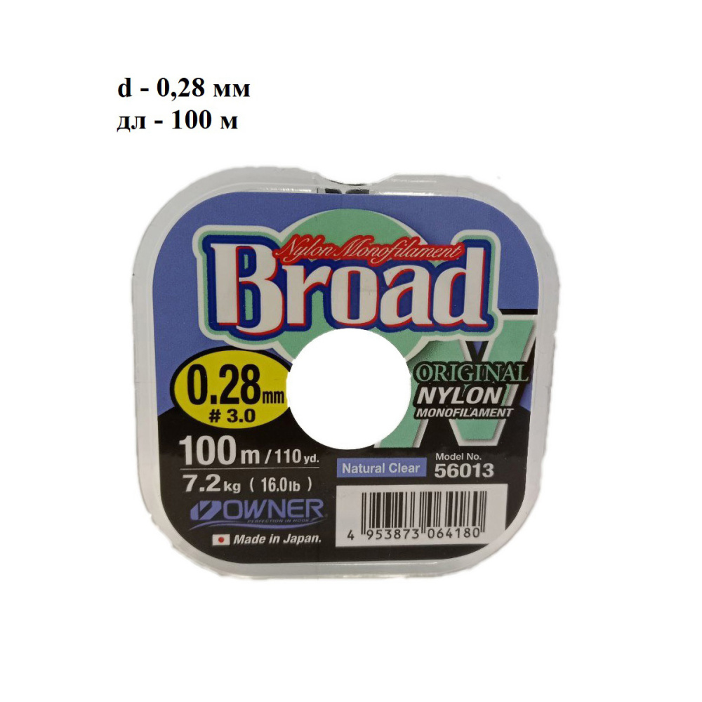 Специальное защитное покрытие наделяет ее повышенными антиабразивными качествам и износостойкостью. Прекрасно калиброванная леска Owner Broad обладает максимальной прочностью на узлах и практически не имеет эффекта памяти. Нить имеет абсолютно круглое сечение и точный выверенный диаметр по всей длине.