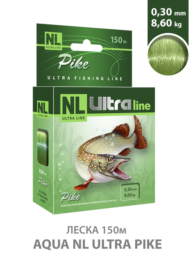 Леска Aqua NL Ultra Pike Щука 150м 0,28мм 7,5кг светло-зеленая