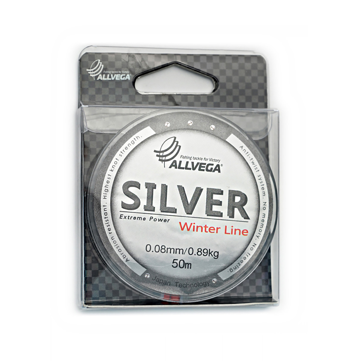 Леска зимняя Allvega Silver 50м 0,08мм 0,89кг серебристая