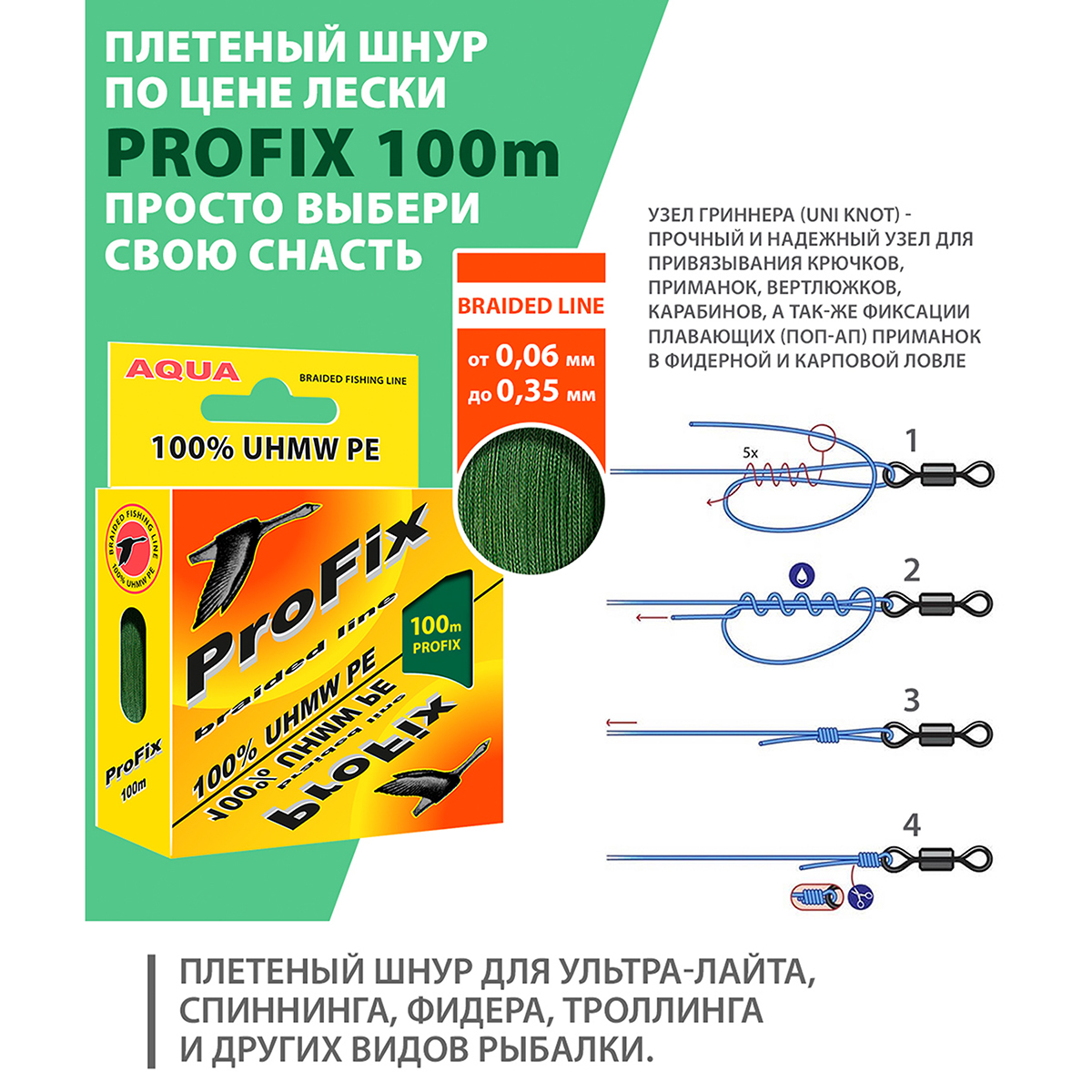 Шнур Aqua ProFix 100м 0,20мм 12,6кг темно-зеленый