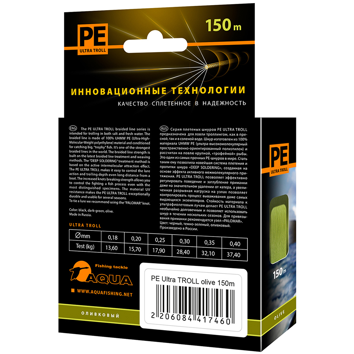 Шнур Aqua PE Ultra Troll 150м 0,40мм 37,4кг оливковый