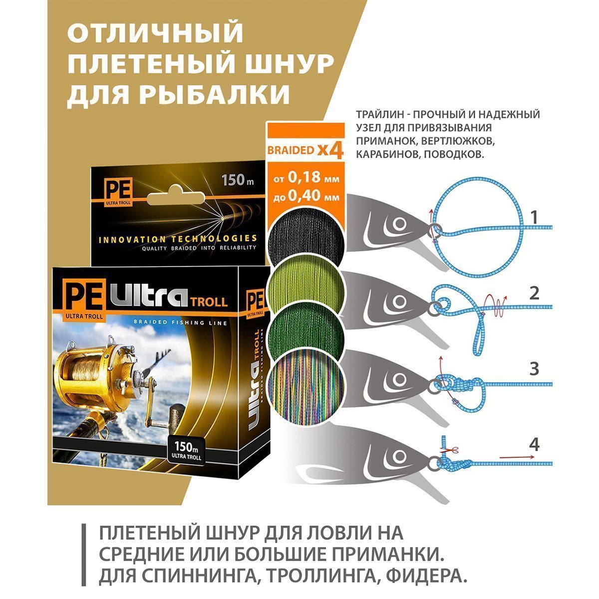 Шнур Aqua PE Ultra Troll 150м 0,20мм 15,7кг мультиколор