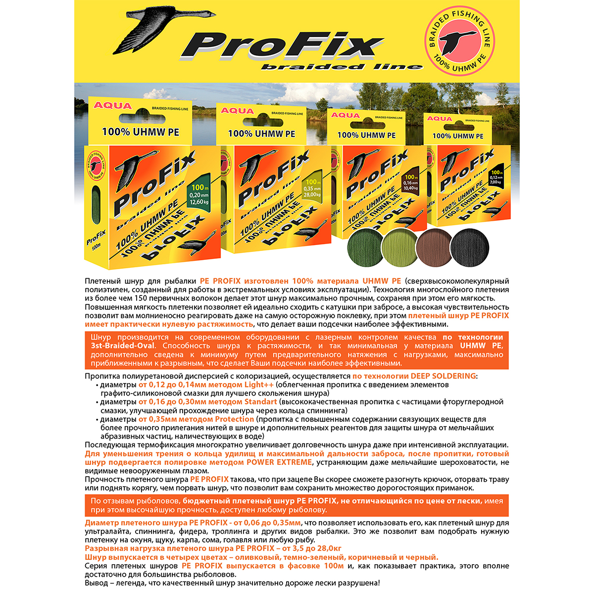 Шнур Aqua ProFix 100м 0,20мм 12,6кг оливковый