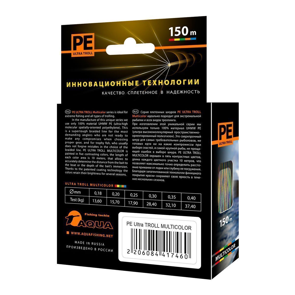 Шнур Aqua PE Ultra Troll 150м 0,30мм 28,4кг мультиколор