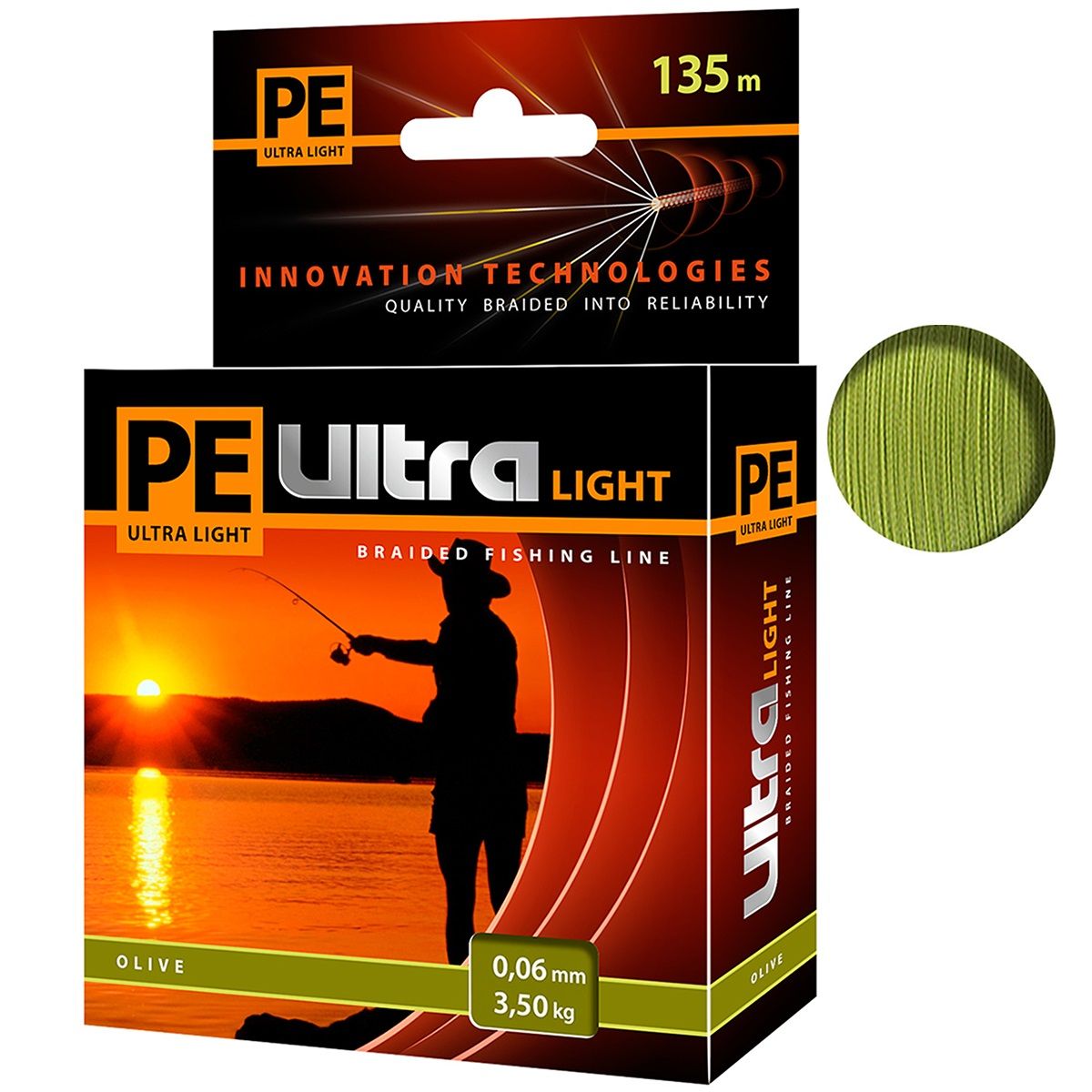 Шнур Aqua PE Ultra Light 135м 0,06мм 3,5кг оливковый