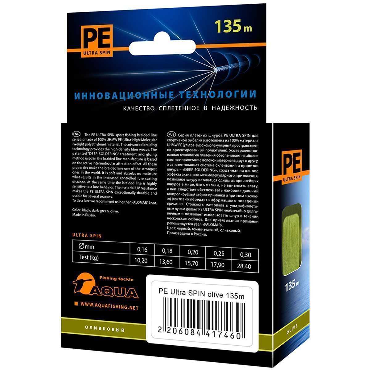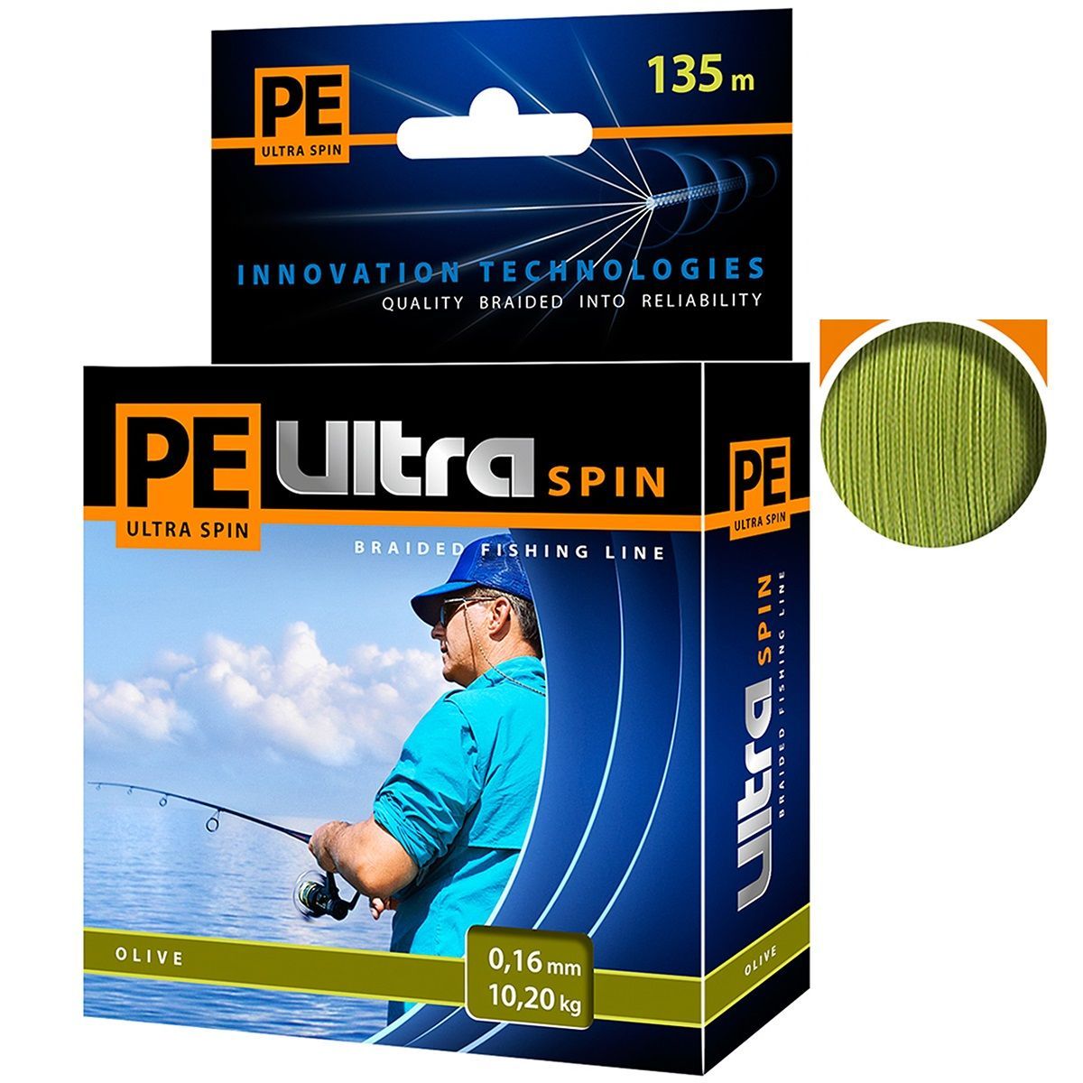 Шнур Aqua PE Ultra Spin 135м 0,16мм 10,2кг оливковый