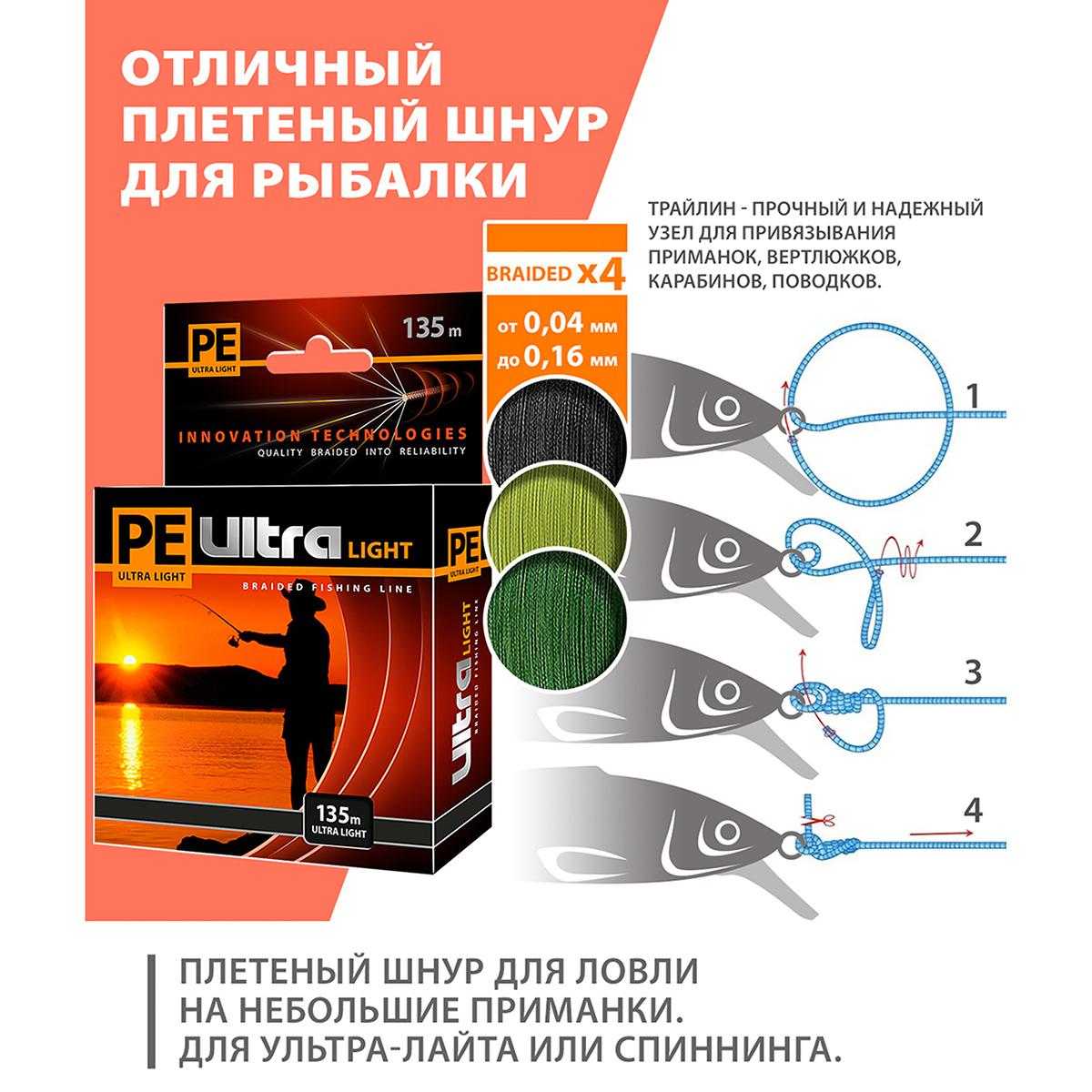 При минимальной толщине, этот шнур является одним из прочнейших PE-шнуров в своем классе и, при этом, позволяет ему оставаться практически невидимым в воде и в то же время не препятствует игре даже самой миниатюрной приманки.