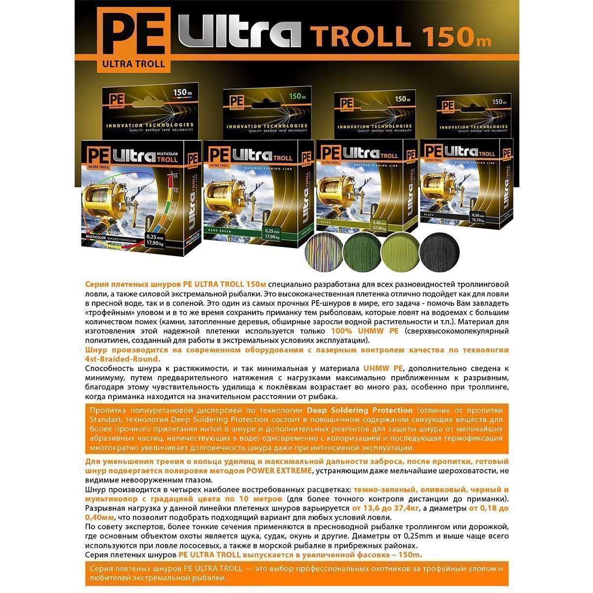 Шнур Aqua PE Ultra Troll 150м 0,35мм 32,1кг черный