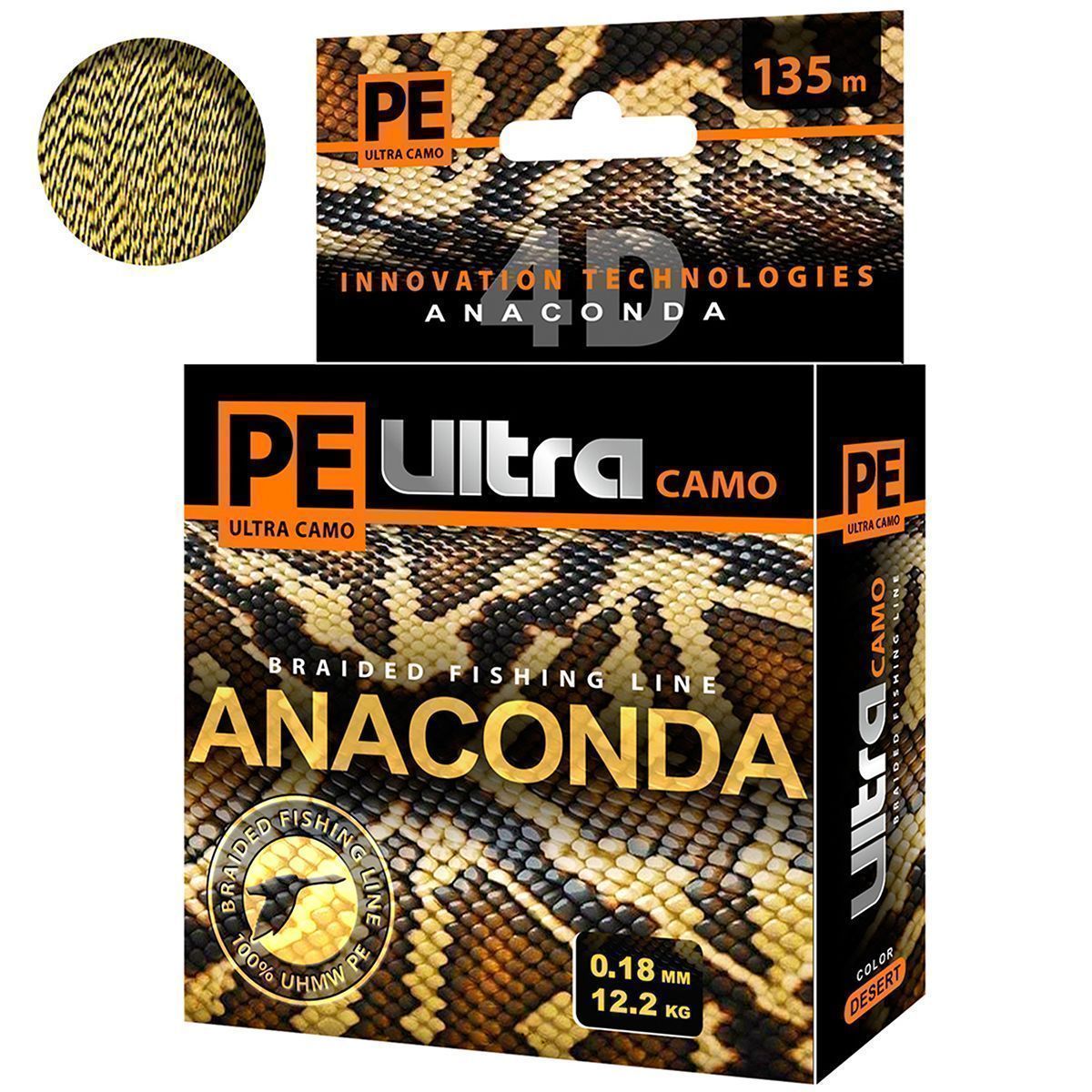 Шнур Aqua PE Ultra Anaconda 135м 0,18мм 12,2кг КМФ желтый