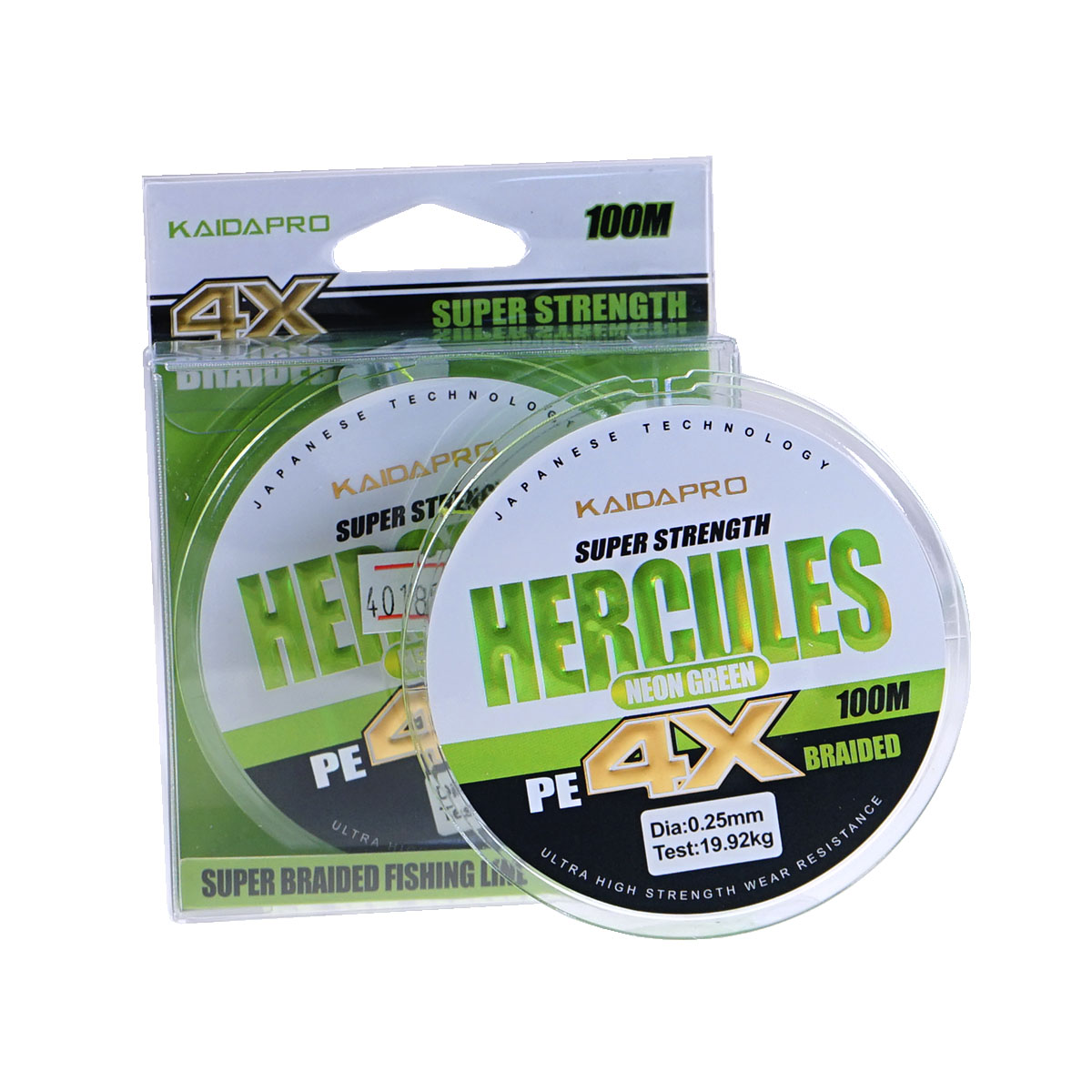 Шнур KaidaPro Hercules Neon Green 4X 100м 0,25мм 19,92кг зеленый