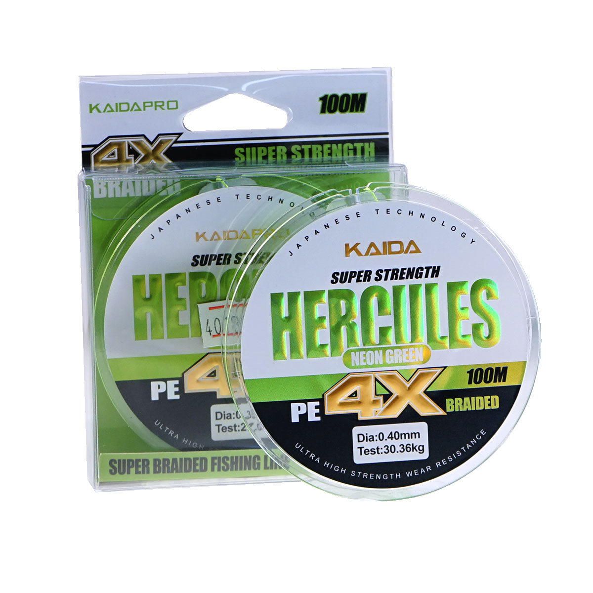 Шнур KaidaPro Hercules Neon Green 4X 100м 0,40мм 30,36кг зеленый