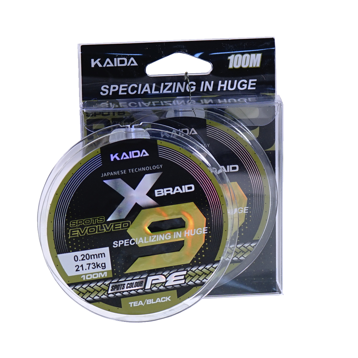 Шнур Kaida Spots Evolved X9 2D 100м 0,20мм 21,73кг черный, зеленый