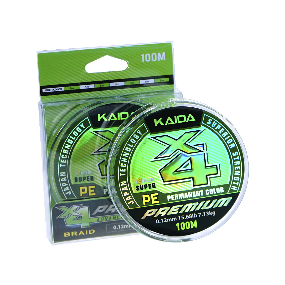 Шнур Kaida Premium 4X 100м 0,12мм 7,13кг салатовый, белый