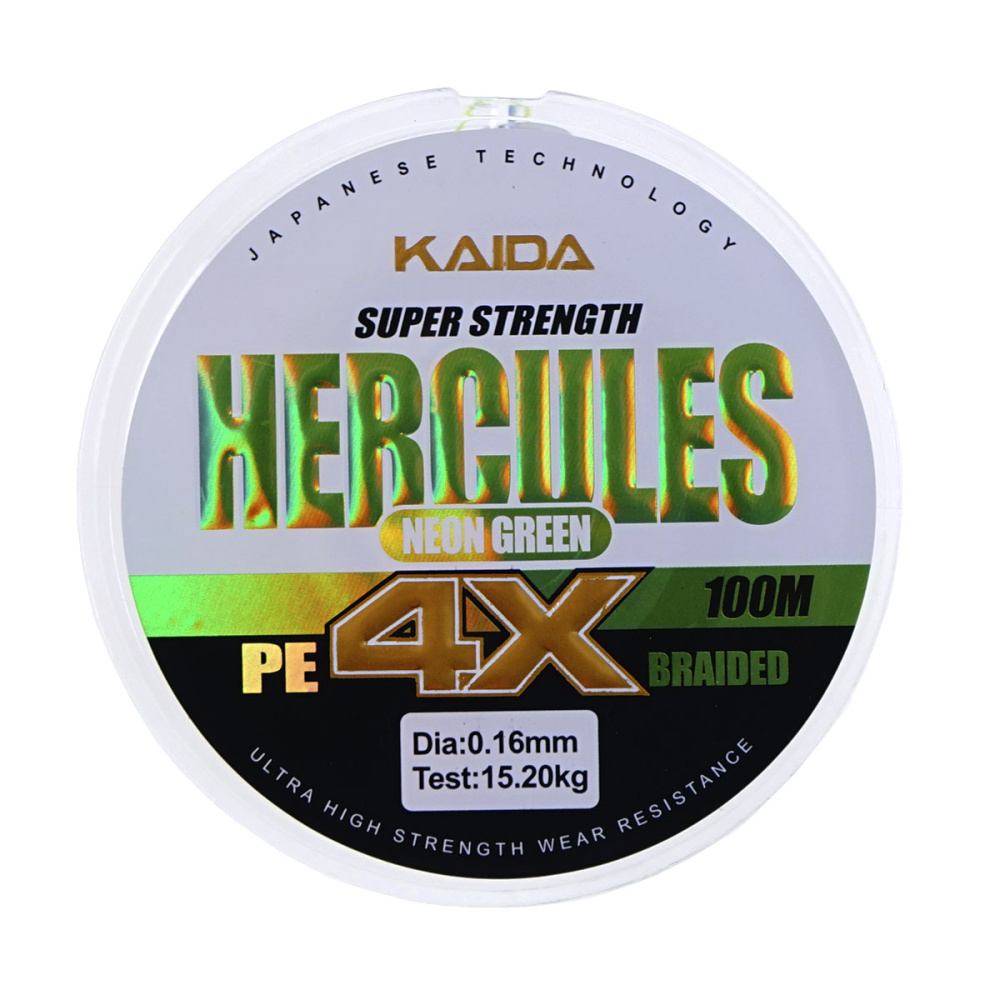 Шнур KaidaPro Hercules Neon Green 4X 100м 0,16мм 15,2кг зеленый