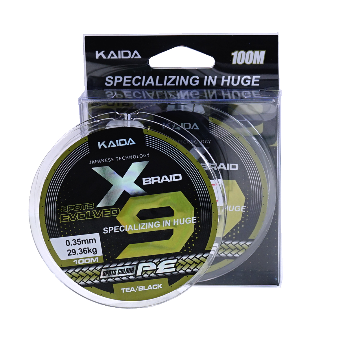 Шнур Kaida Spots Evolved X9 2D 100м 0,35мм 29,36кг черный, зеленый
