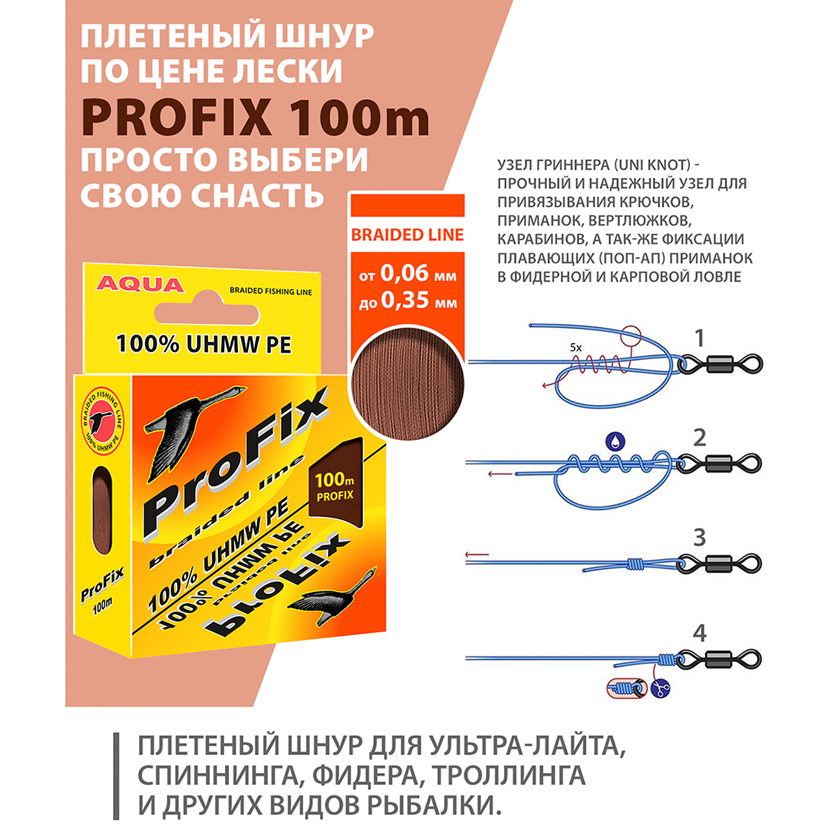 Шнур Aqua ProFix 100м 0,18мм 11,2кг коричневый