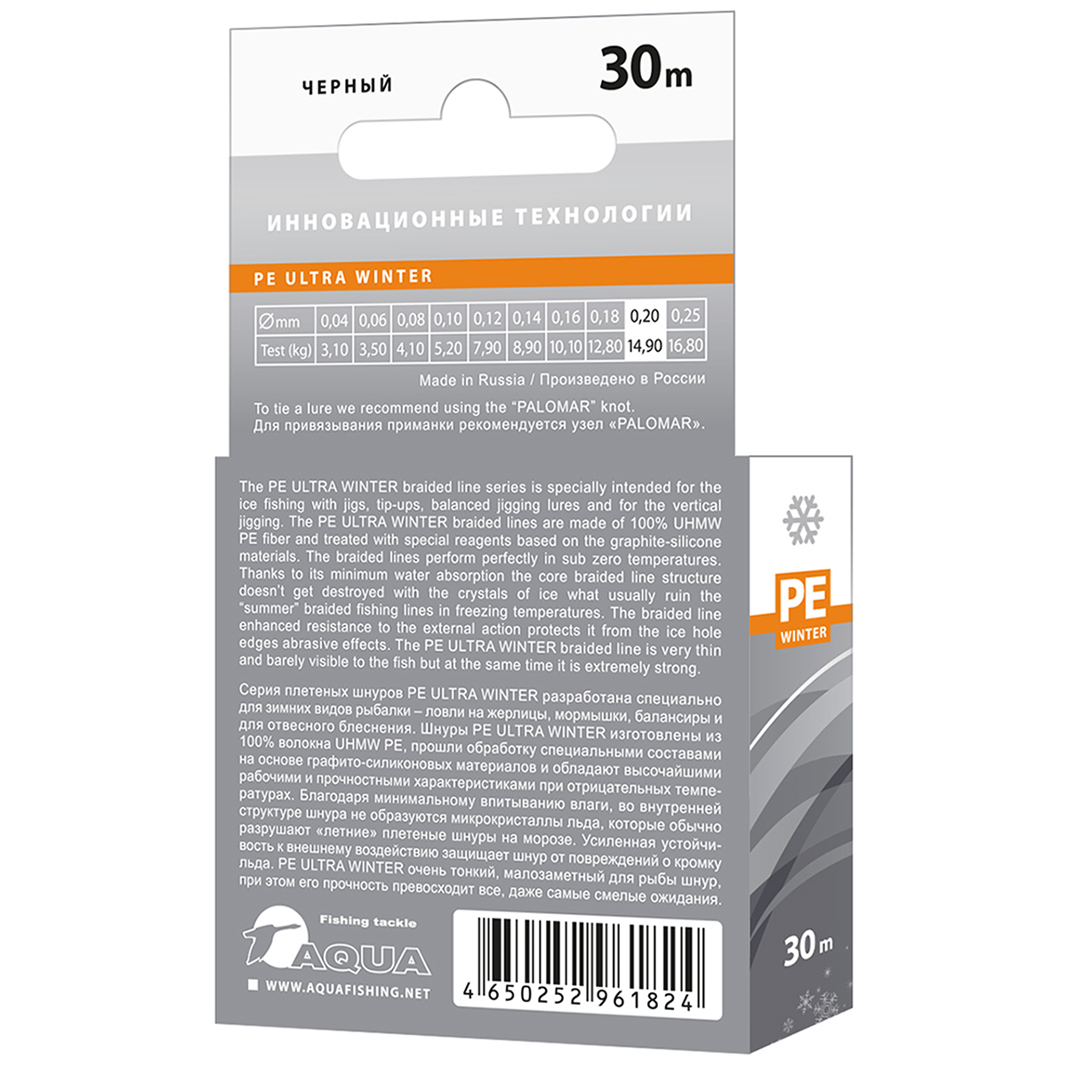 Шнур зимний Aqua PE Ultra Winter 30м 0,18мм 12,8кг черный