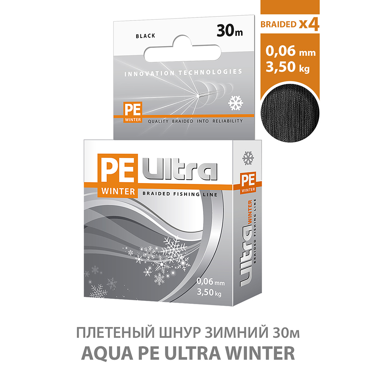 Шнур зимний Aqua PE Ultra Winter 30м 0,06мм 3,5кг черный