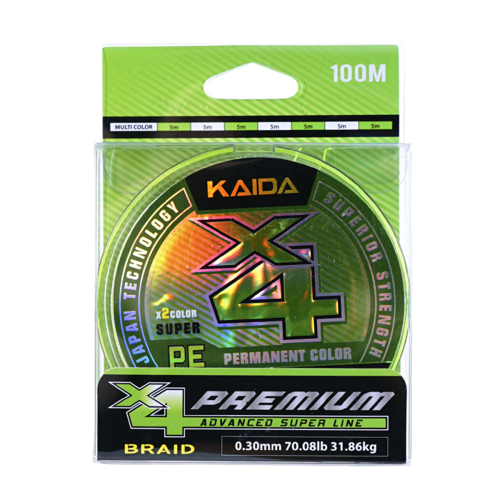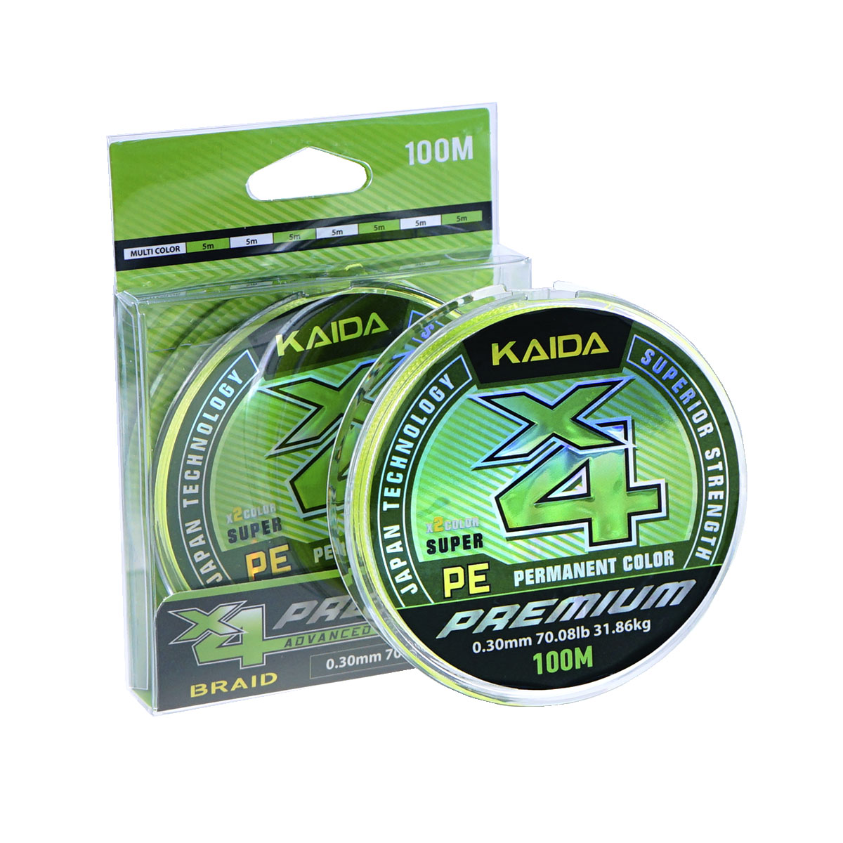 Шнур Kaida Premium 4X 100м 0,30мм 31,86кг салатовый, белый