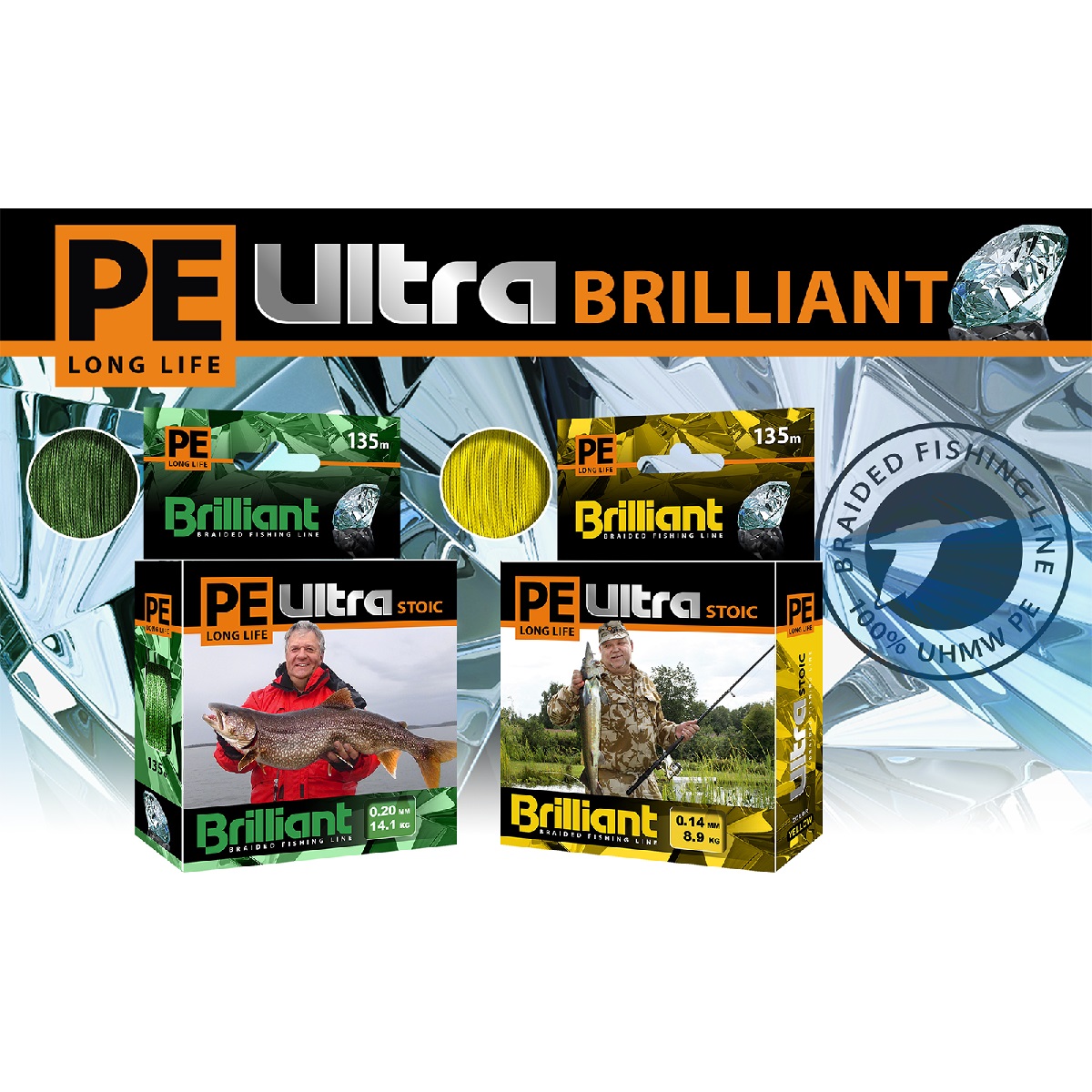 Шнур Aqua PE Ultra Brilliant Stoic 135м 0,18мм 12,2кг желтый