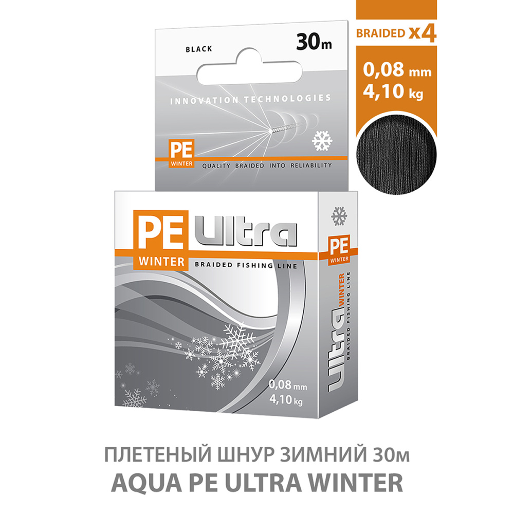Шнур зимний Aqua PE Ultra Winter 30м 0,20мм 14,9кг черный